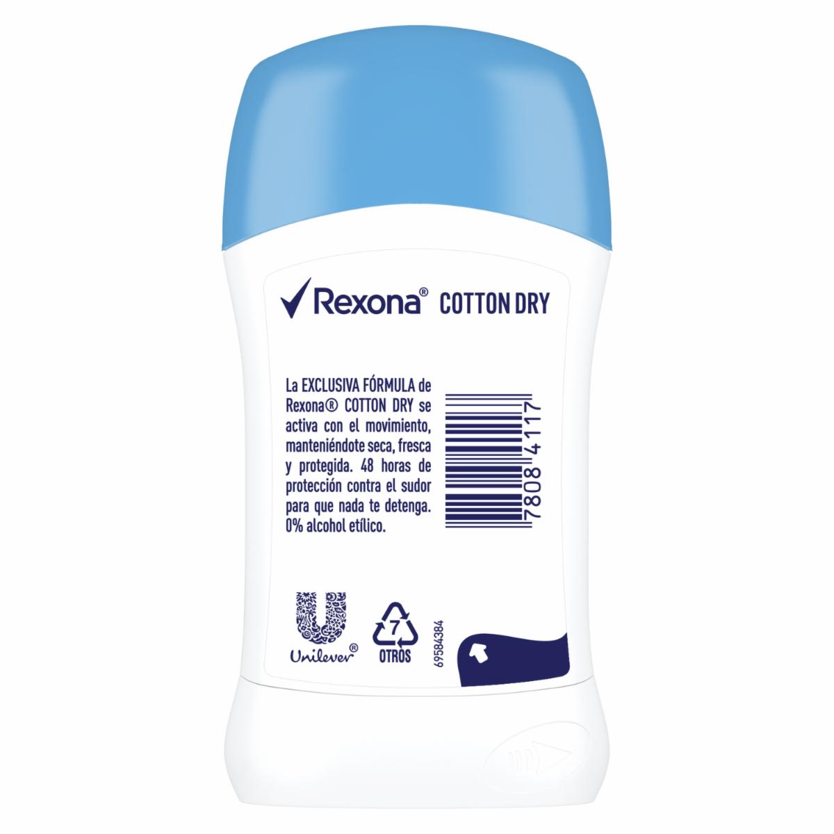 - Rexona Cotton Dry, Con Extracto De Algodón, Fragancia Con Sútiles Notas Florales Desarrollado Especialmente Para Las Mujeres Que Buscan Sentirse Frescas Y Protegidas De La Transpiración Y Del Mal Olor Hasta Por 48 Horas, Mientras Cuidan Su Piel