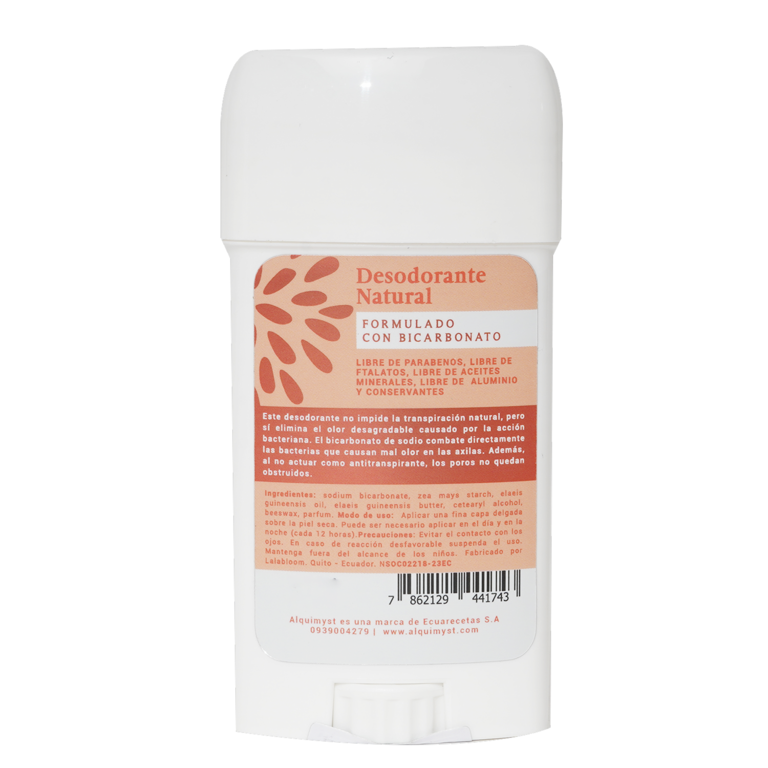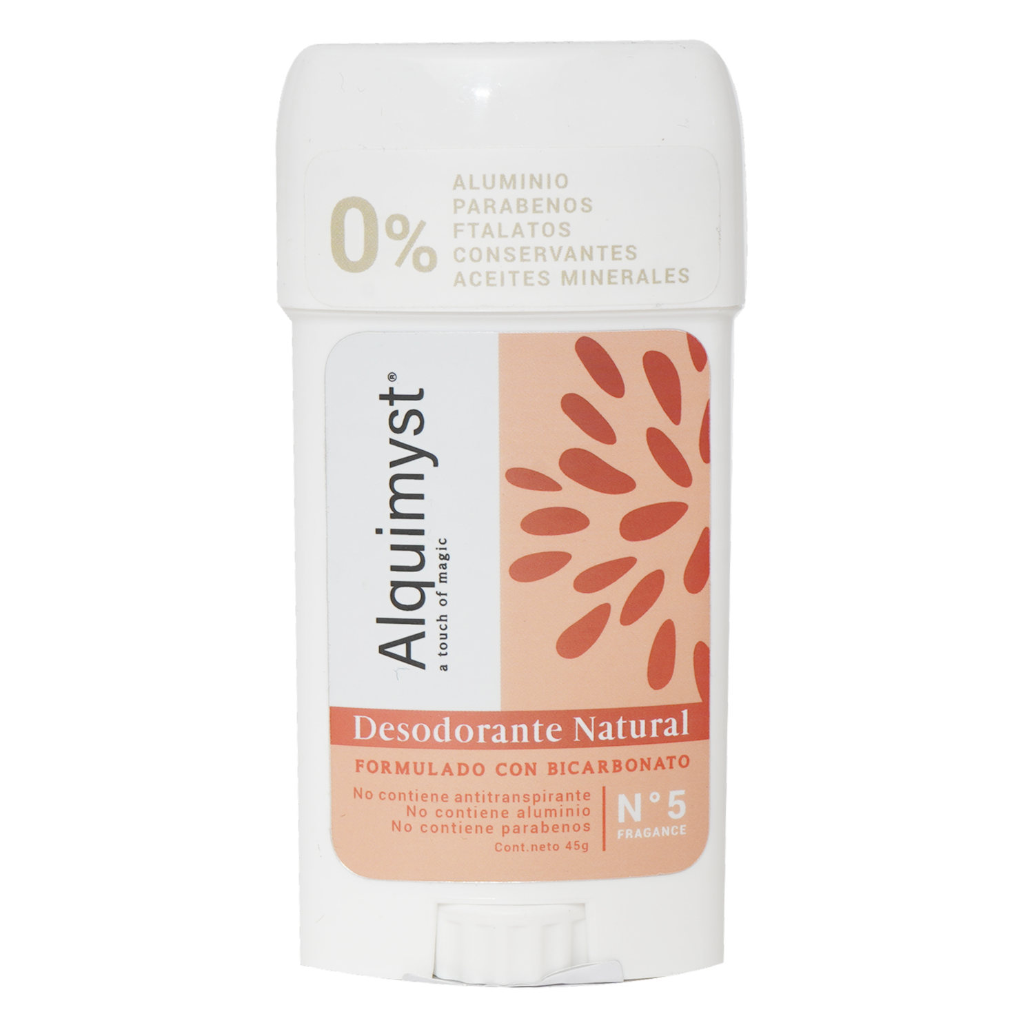 - Disfruta una protección natural con el desodorante en barra Alquimyst formulado con bicarbonato. Sin antitranspirantes, aluminio ni parabenos, permite la transpiración natural mientras combate eficazmente el mal olor causado por bacterias. Libre de aceites naturales, ofrece frescura duradera y cuidado delicado para tu piel todos los días