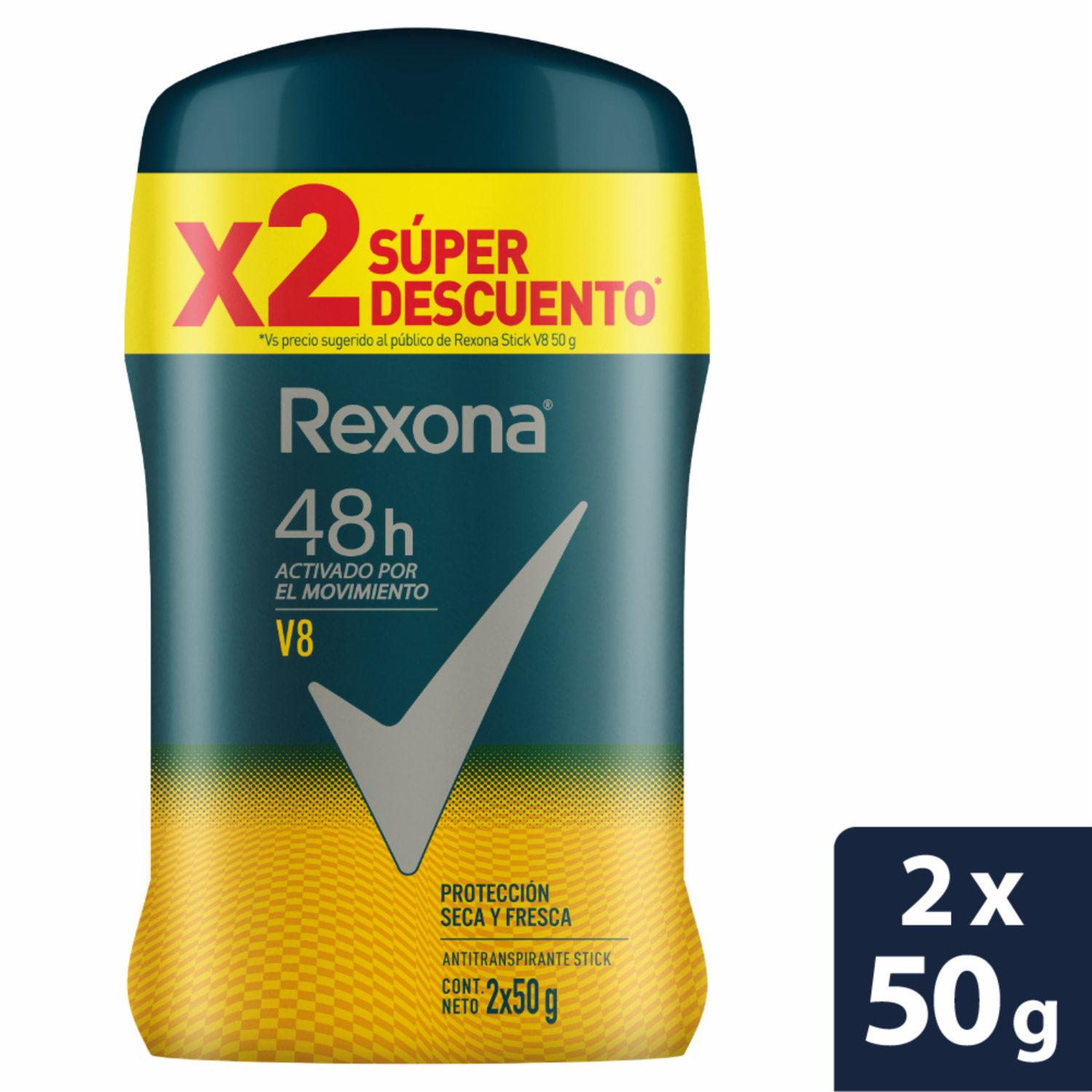 Desodorante En Barra Para Caballero V8 Precio Especial REXONA 2 X 50 Ml