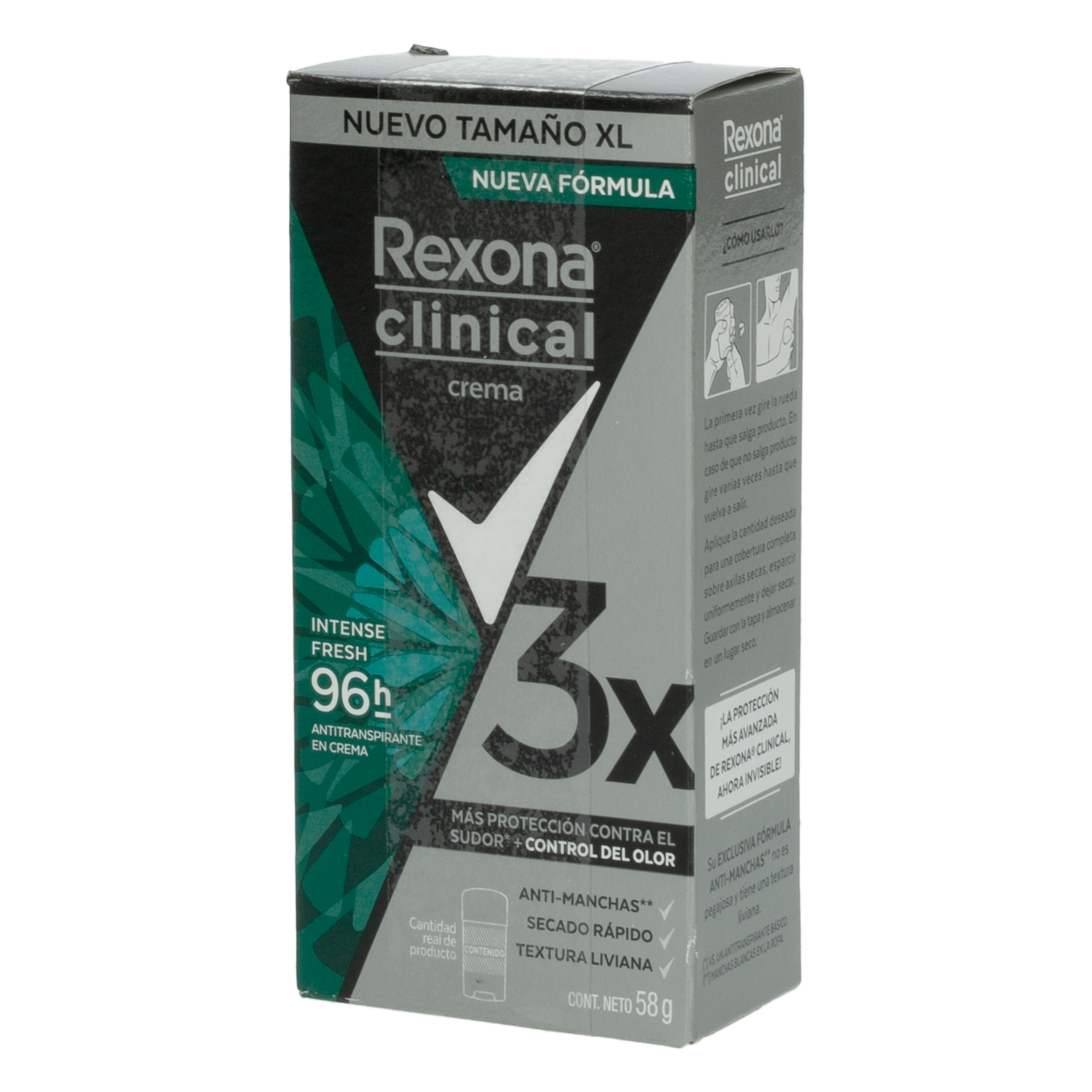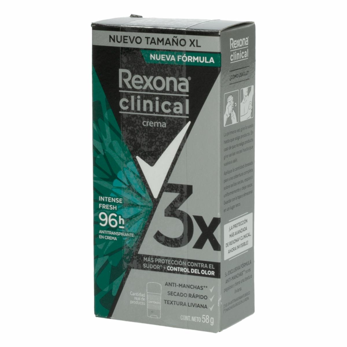 Desodorante En Crema Clinical Intense Fresh 96H Para Caballero REXONA 58 G