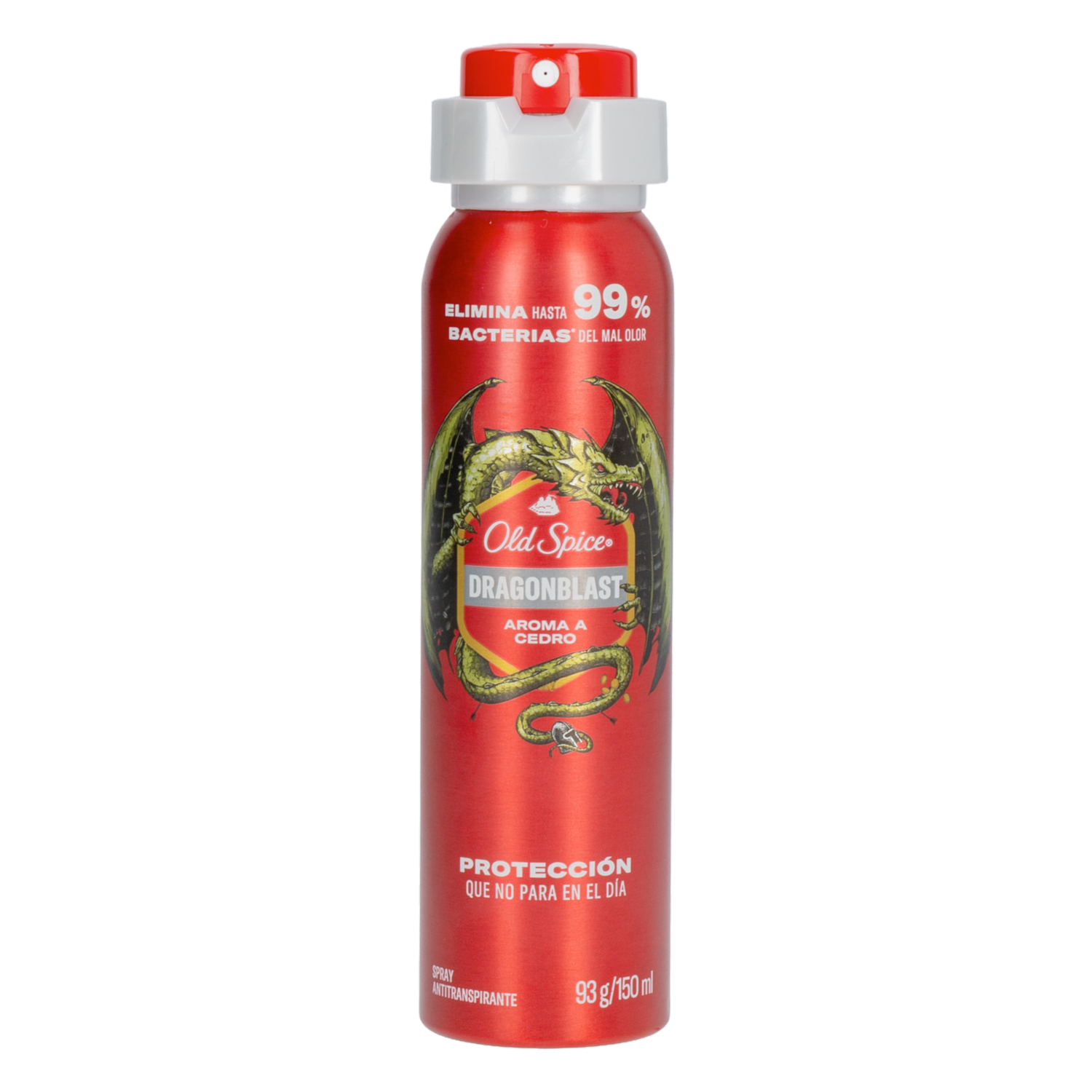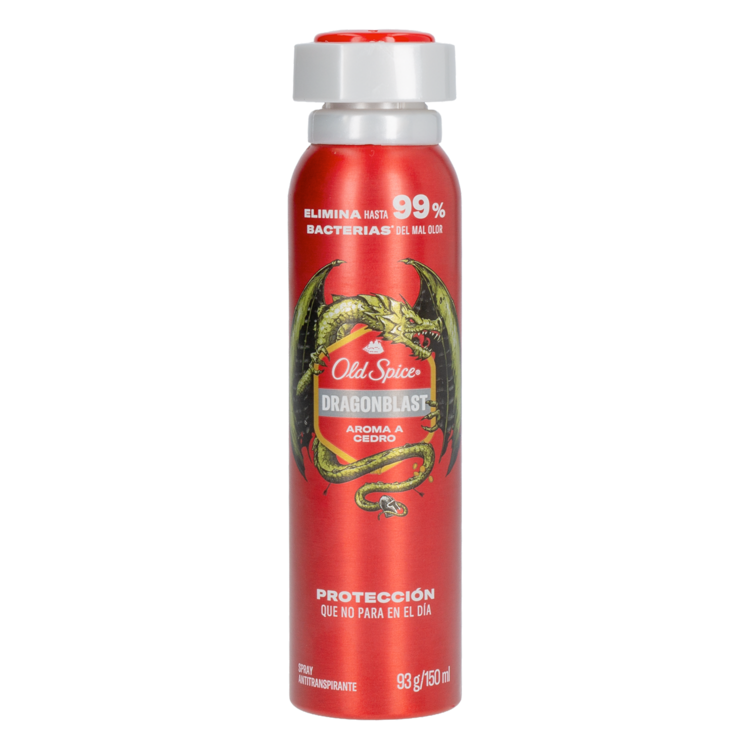 - Old Spice Dragonblast Spray Antitranspirante es un desodorante en aerosol formulado para ofrecer protección avanzada contra el sudor y el mal olor durante todo el día. Su acción antibacterial ayuda a eliminar hasta el 99% de las bacterias causantes del mal olor, manteniendo la piel fresca y seca. Destaca por su fragancia masculina de notas amaderadas con aroma a cedro, y por su tecnología 3X Active Defense, combina control del sudor, frescura duradera y protección efectiva a lo largo del día
