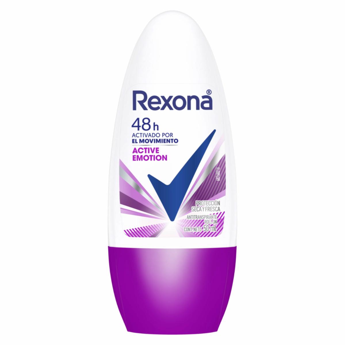 • Disfruta de una frescura emocionante con el Desodorante Roll-On Active Emotion de Rexona en su envase de 50ml