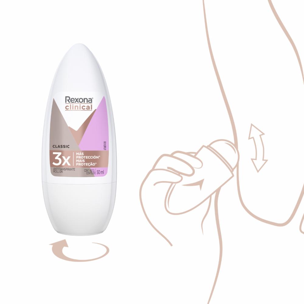 • Experimenta la protección clásica con el Desodorante Roll-On Clinical Classic Women de Rexona en su envase de 50ml