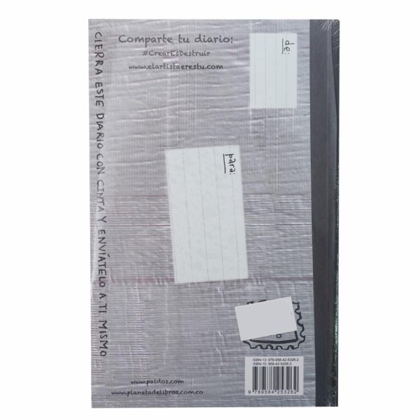 Lleva este diario contigo a todas partes, sigue las instrucciones y garabatea, escribe, pinta, lame, grapa, pega, colorea, rompe, escupe, recorta, moja, golpea, arranca, dibuja, y, sobre todo, CREA