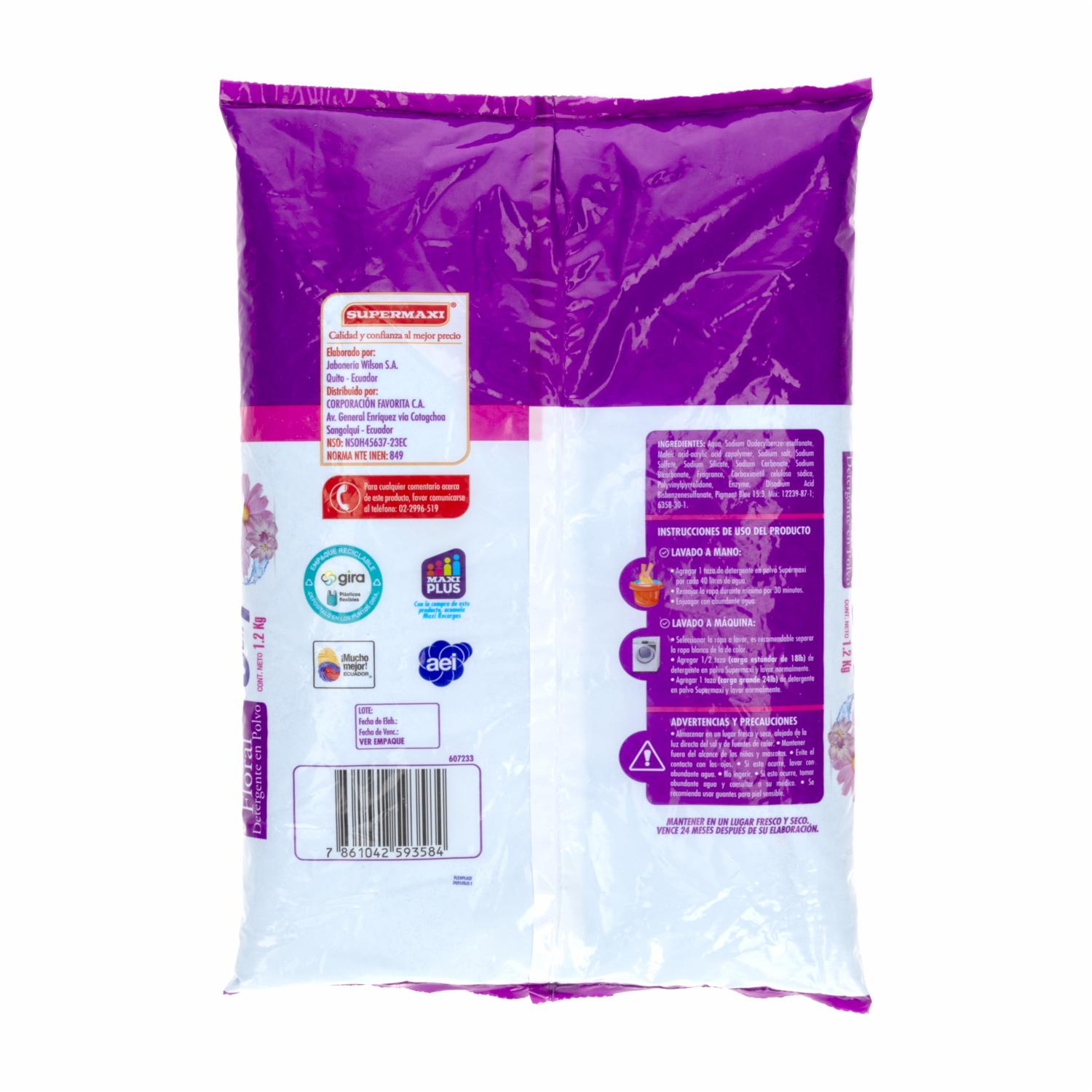 Detergente En Polvo 5 en 1 Floral SUPERMAXI 1200 G