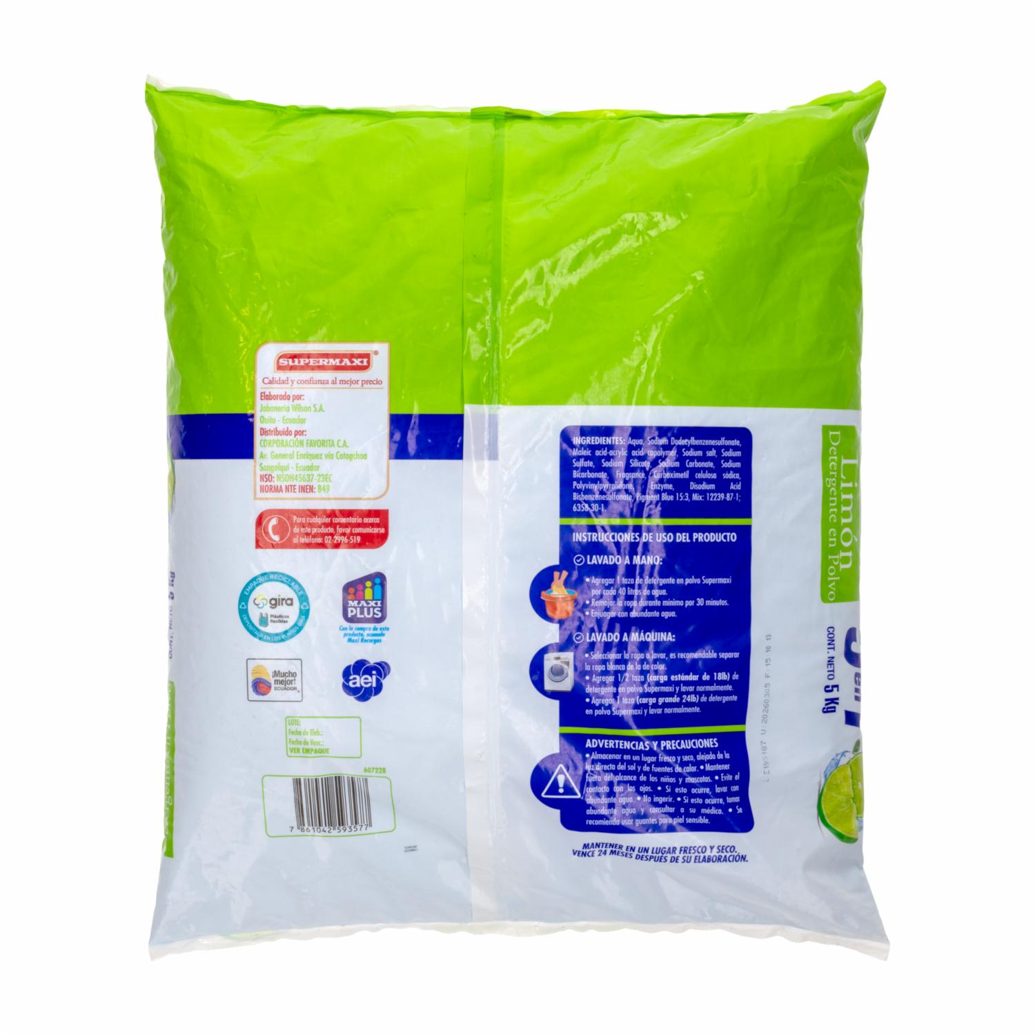 Detergente En Polvo 5 en 1 Limón SUPERMAXI 5000 G