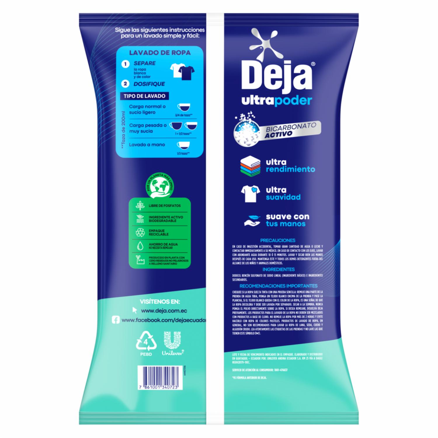 Detergente En Polvo Aloe Vera Con Suavizante + Bicarbonato DEJA 2 Kg