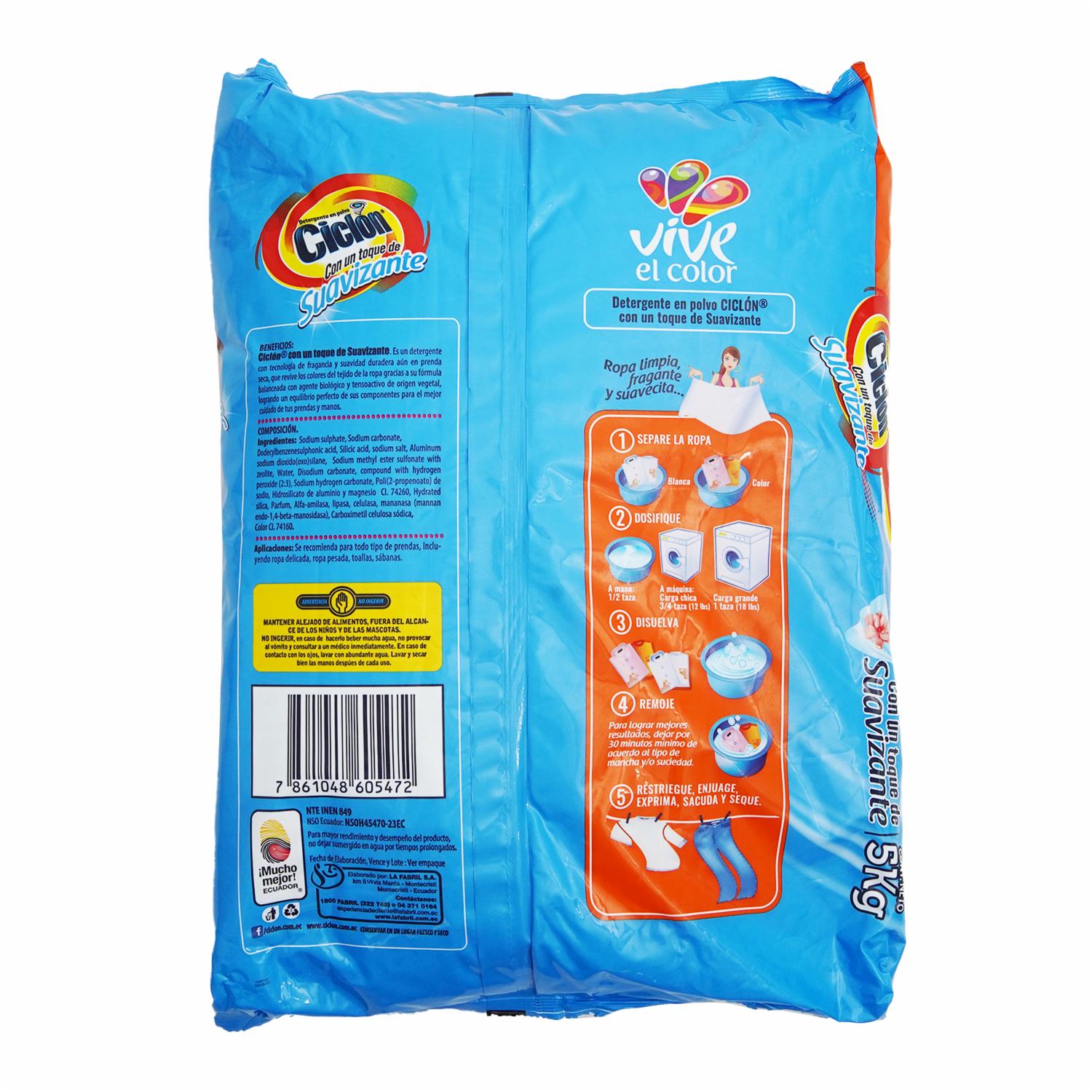 - Detergente Ciclón Con Un Toque De Suavizante 5kg Revive Los Colores, Aporta Suavidad Y Fragancia Duradera A Tus Prendas
