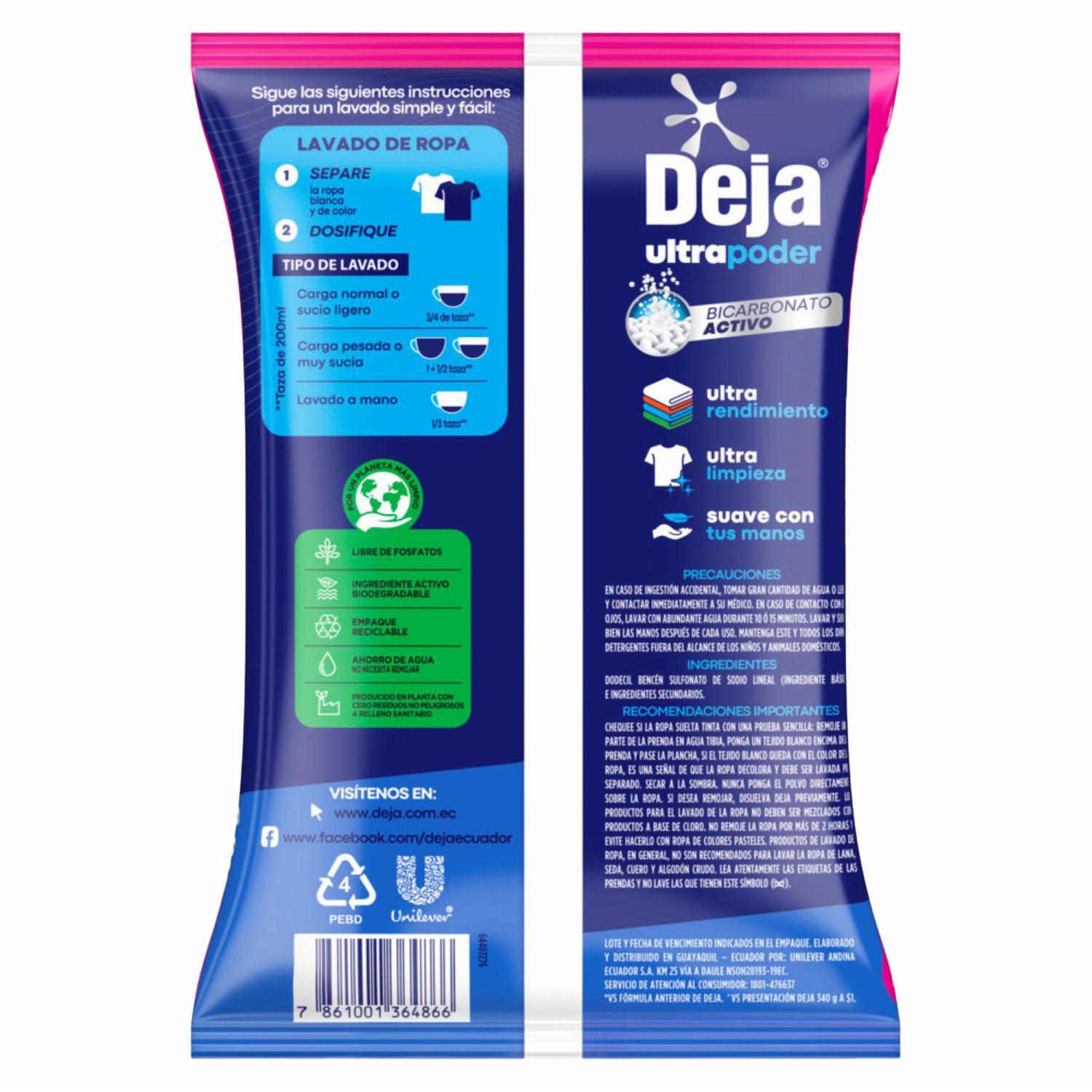 Detergente en polvo para el lavado de tu ropa, ultra poder, ultra rendimiento, y ultra limpieza con bicarbonato activo