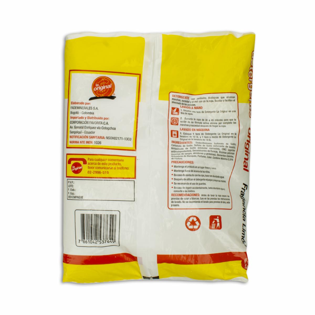 Detergente En Polvo Fragancia Limón LA ORIGINAL 1800 G