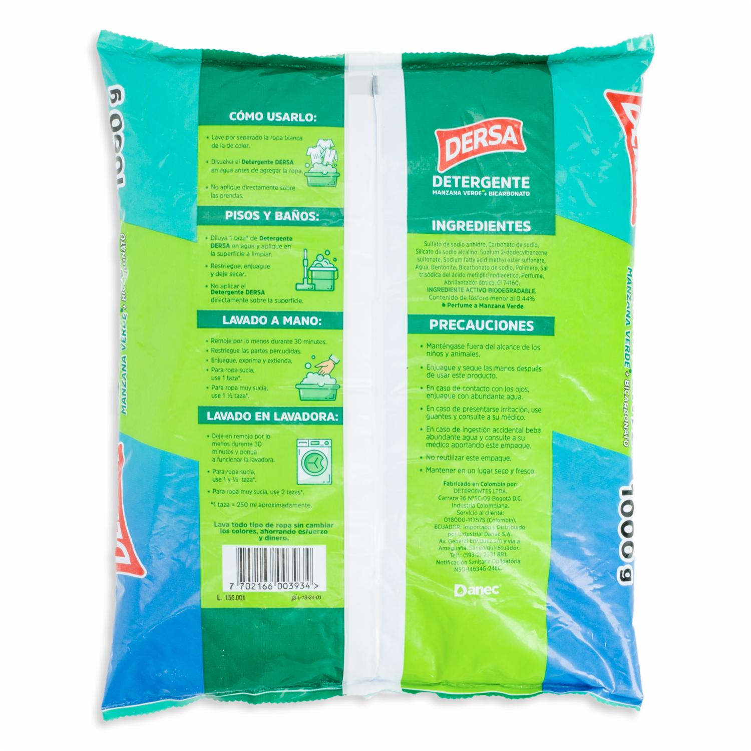 Detergente En Polvo Fragancia Manzana Verde Con Bicarbonato Ropa Limpia Y Perfumada DERSA 1000 G