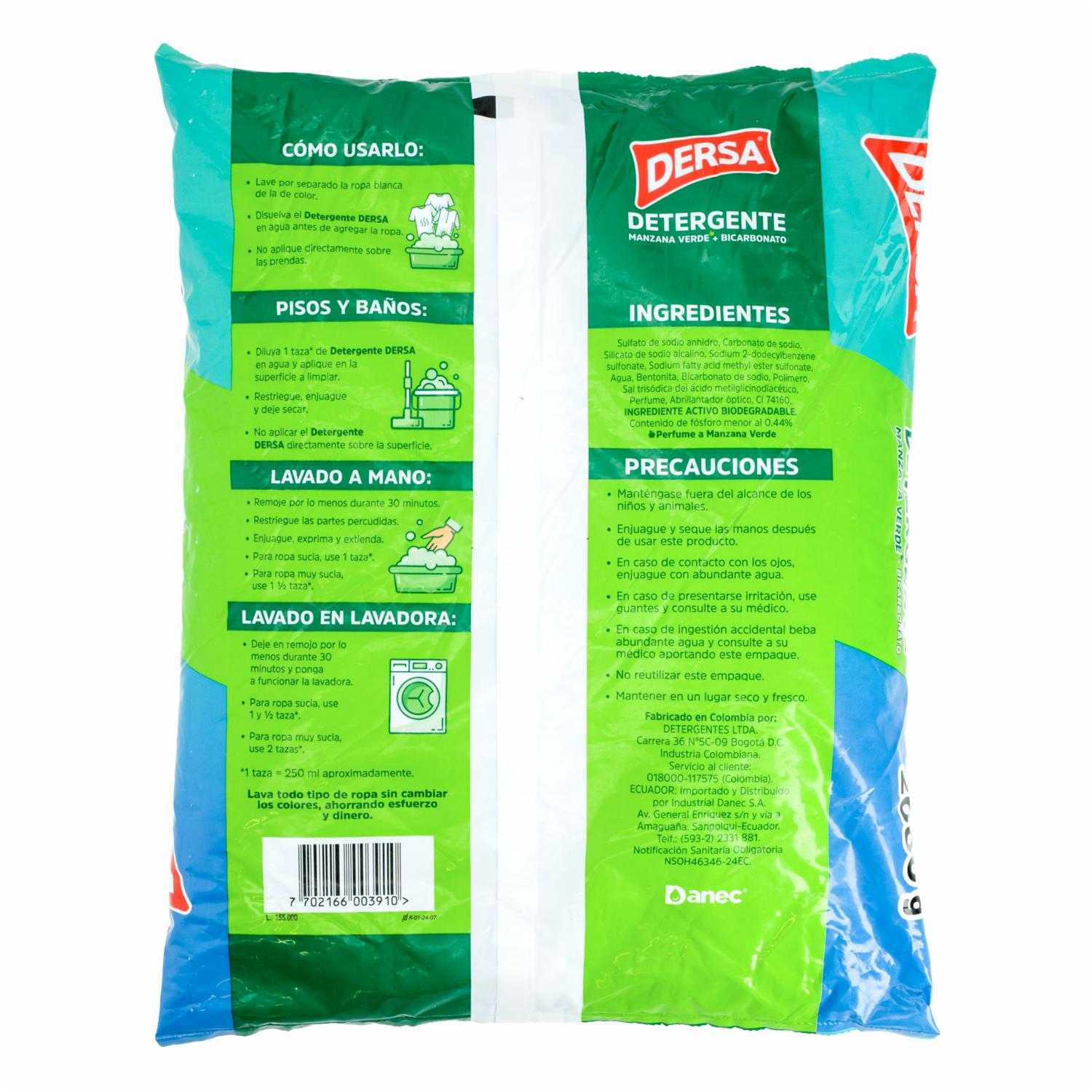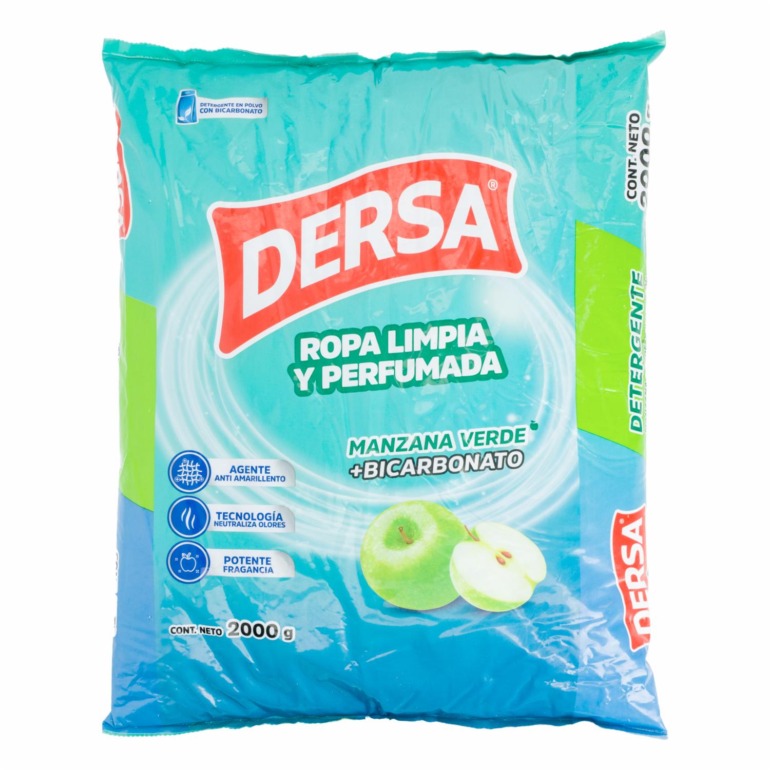 Detergente En Polvo Fragancia Manzana Verde Con Bicarbonato Ropa Limpia Y Perfumada DERSA 2000 G