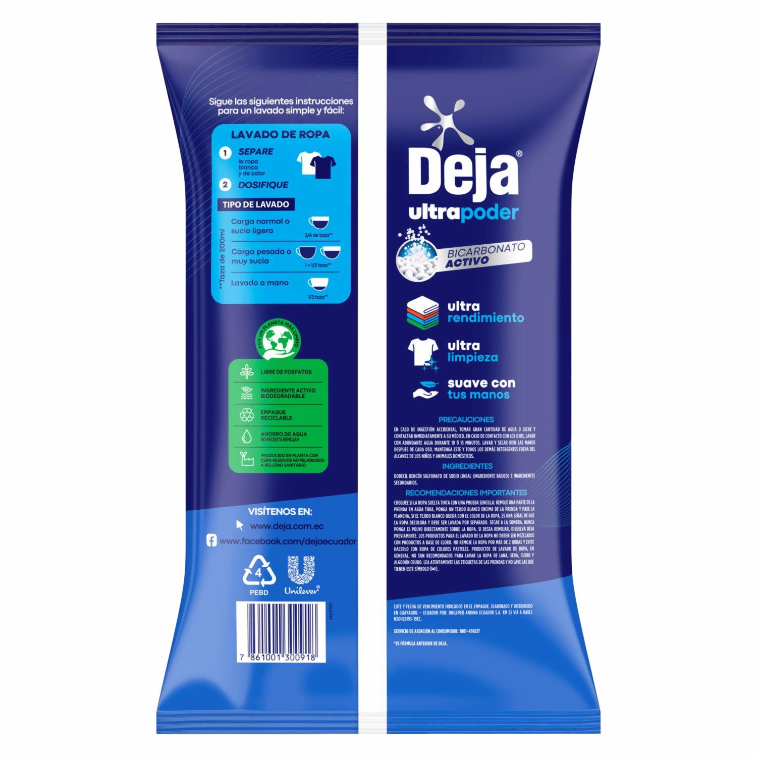 - Detergente en polvo Floral con moléculas de limpieza profunda + bicarbonato, limpieza suave y frescura envolvente en cada lavado. Elimina manchas y protege tus prendas. Con 1200 gramos de eficacia y suavidad incomparable. ¡Compra ahora y disfruta de la calidad DEJA!
