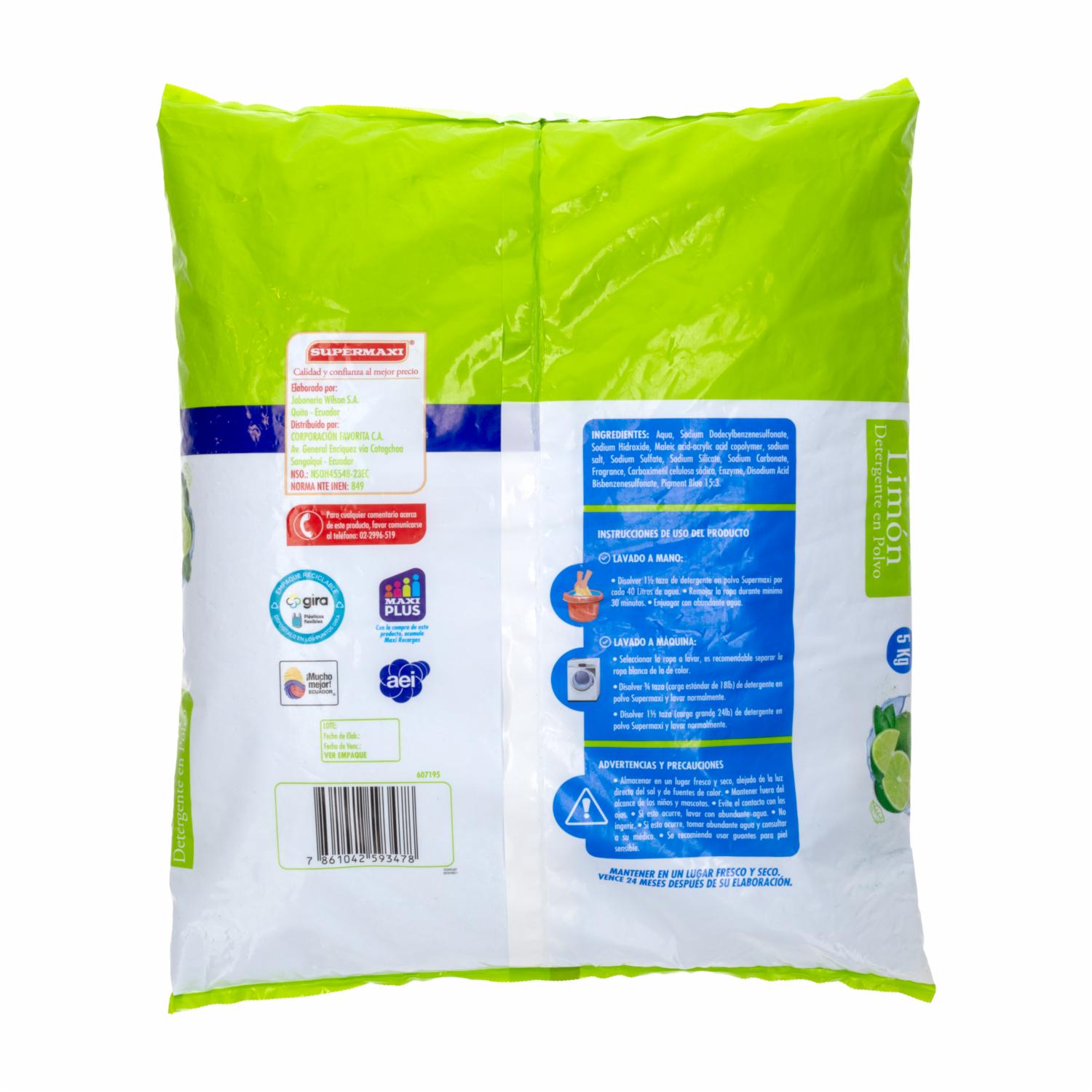 Detergente En Polvo Mejorado Limón SUPERMAXI 5000 G