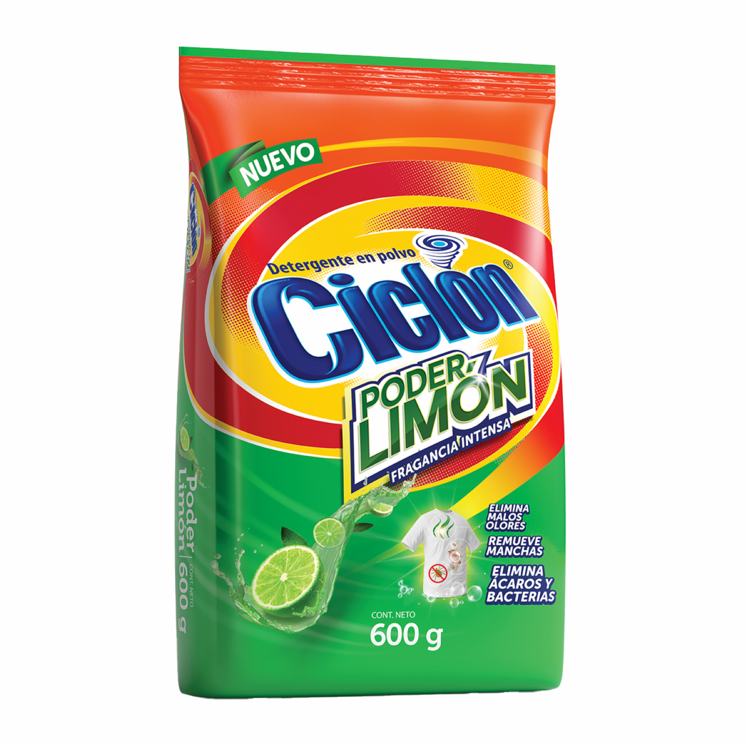 Detergente En Polvo Poder Limón CICLÓN 600 G – CICLÓN. Disponible en nuestros locales. Precio y stock pueden variar según la tienda.
