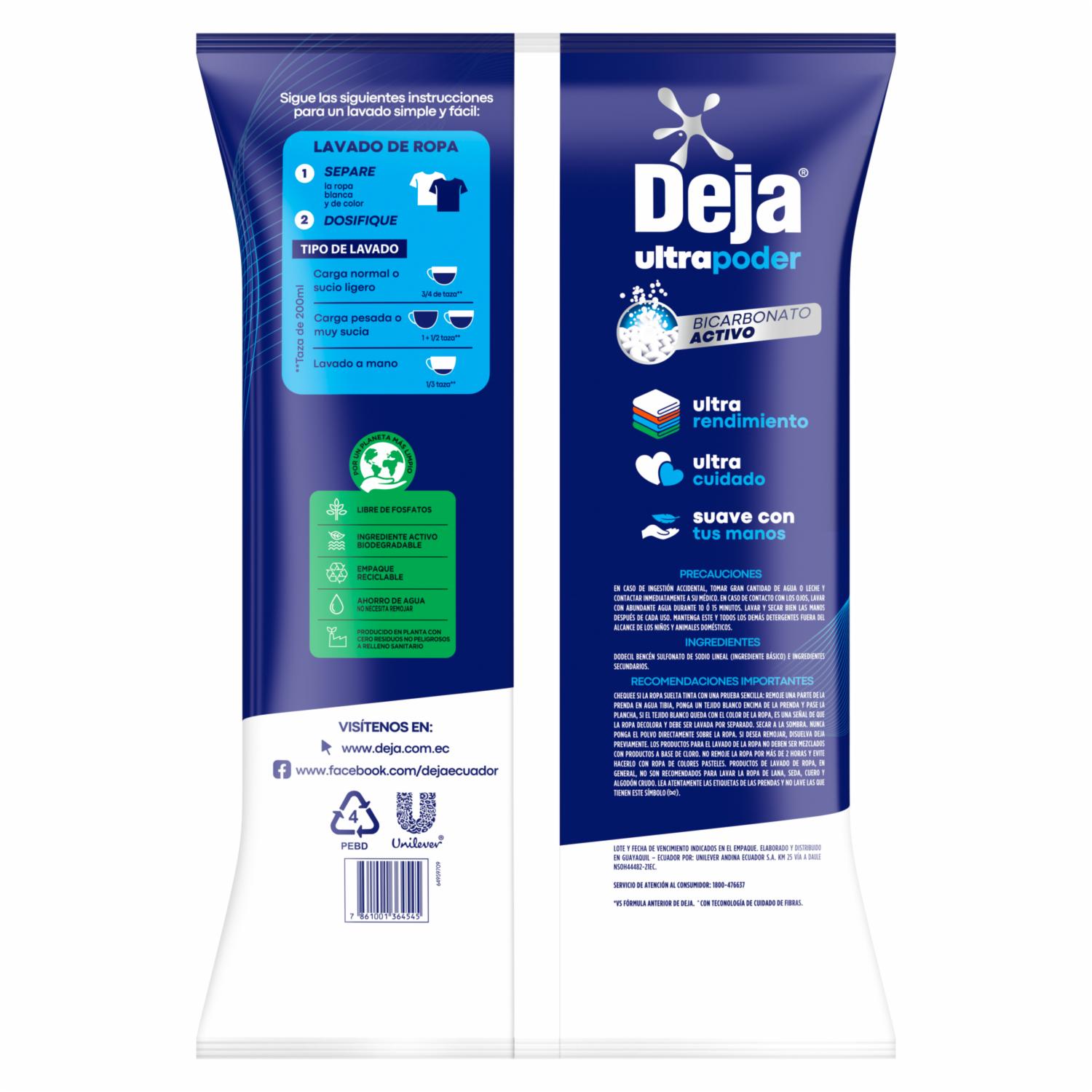 - Detergente en polvo para lavado de ropa, con bicarbonato activo, con ultra poder, ultra rendimiento y ultra cuidado