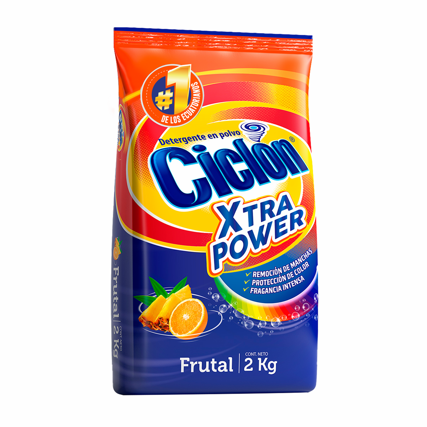 Detergente En Polvo Ciclón Otra Power De 2kg Te Brinda Un Lavado Con Más Power, Extra Remoción De Manchas Difíciles, Protección De Los Colores De La Ropa Y Un Intenso Aroma Frutal