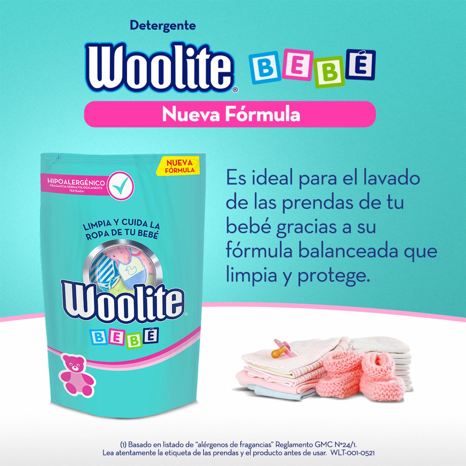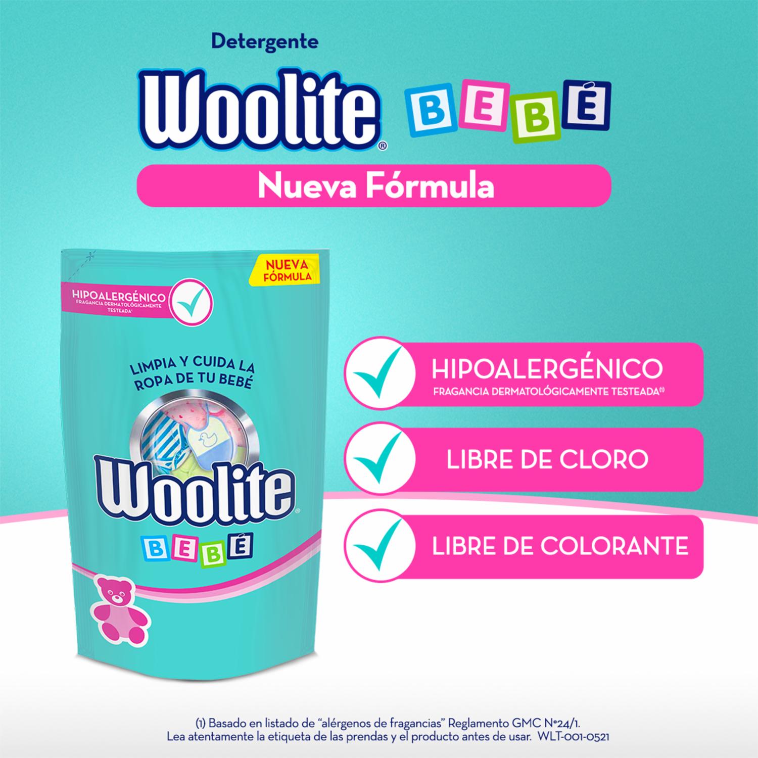 - Woolite Bebé Tiene Una Fórmula Hipoalergénica Que Es Delicada Con La Ropa, Ya Que No Contiene Componentes Agresivos Ni Colorantes. *lea Atentamente El Rótulo / Etiqueta De Las Prendas Y El Producto Antes De Su Uso