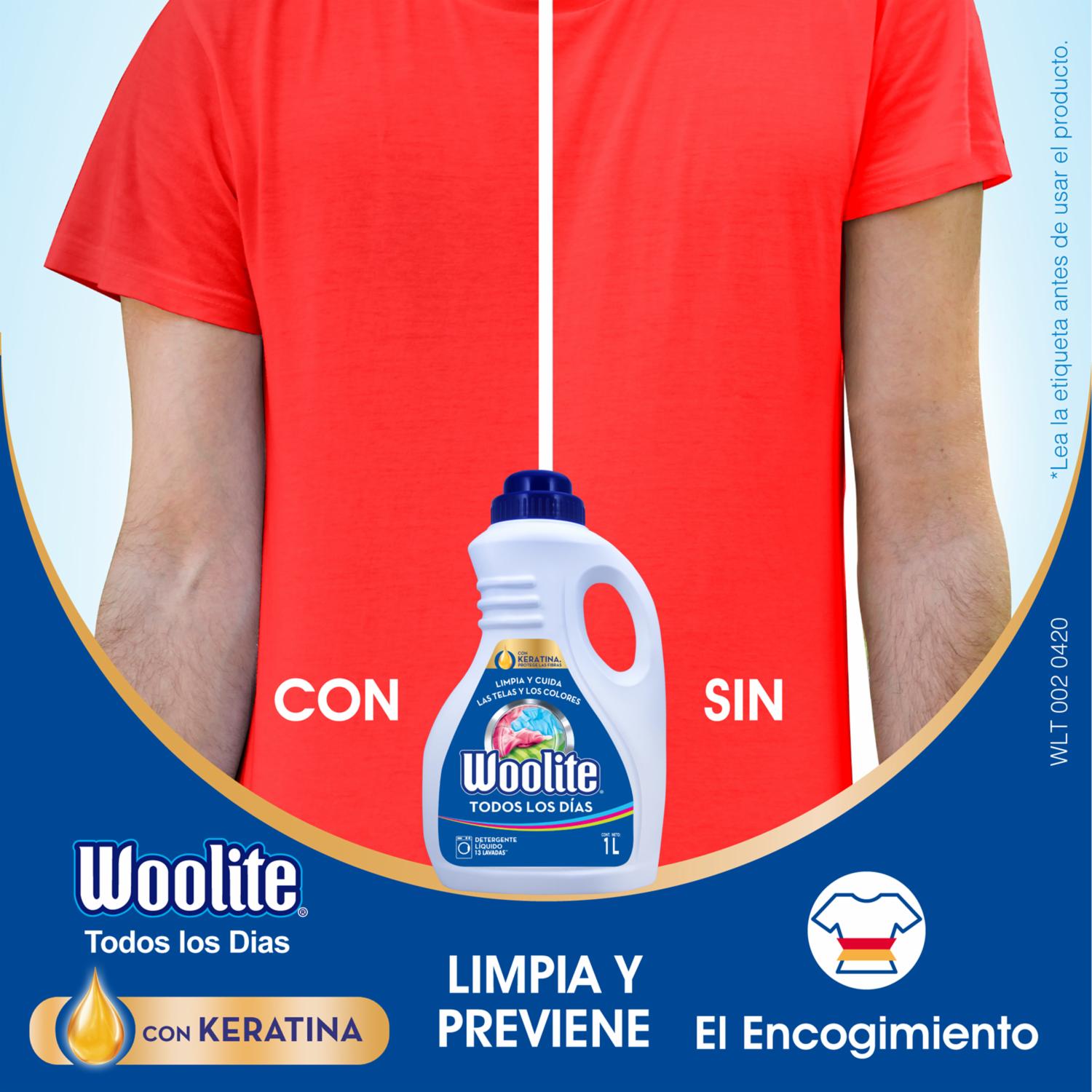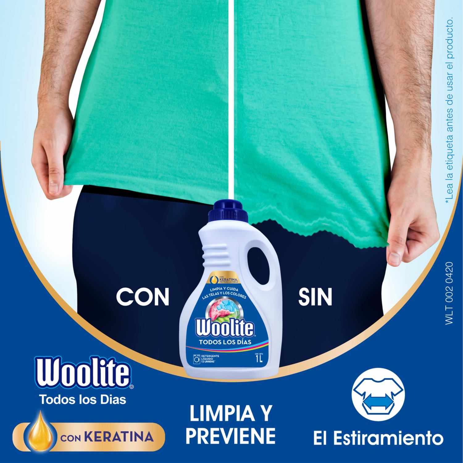 Woolite Todos Los Días Ahora Con Keratina Es El Detergente Líquido Para Toda Tu Ropa Ya Que Te Ayuda A Limpiar Y Prevenir La Pérdida De Color, El Estiramiento Y El Encogimiento De Tus Prendas Favoritas. *lea Atentamente El Rótulo / Etiqueta De Las Prendas Y El Producto Antes De Su Uso