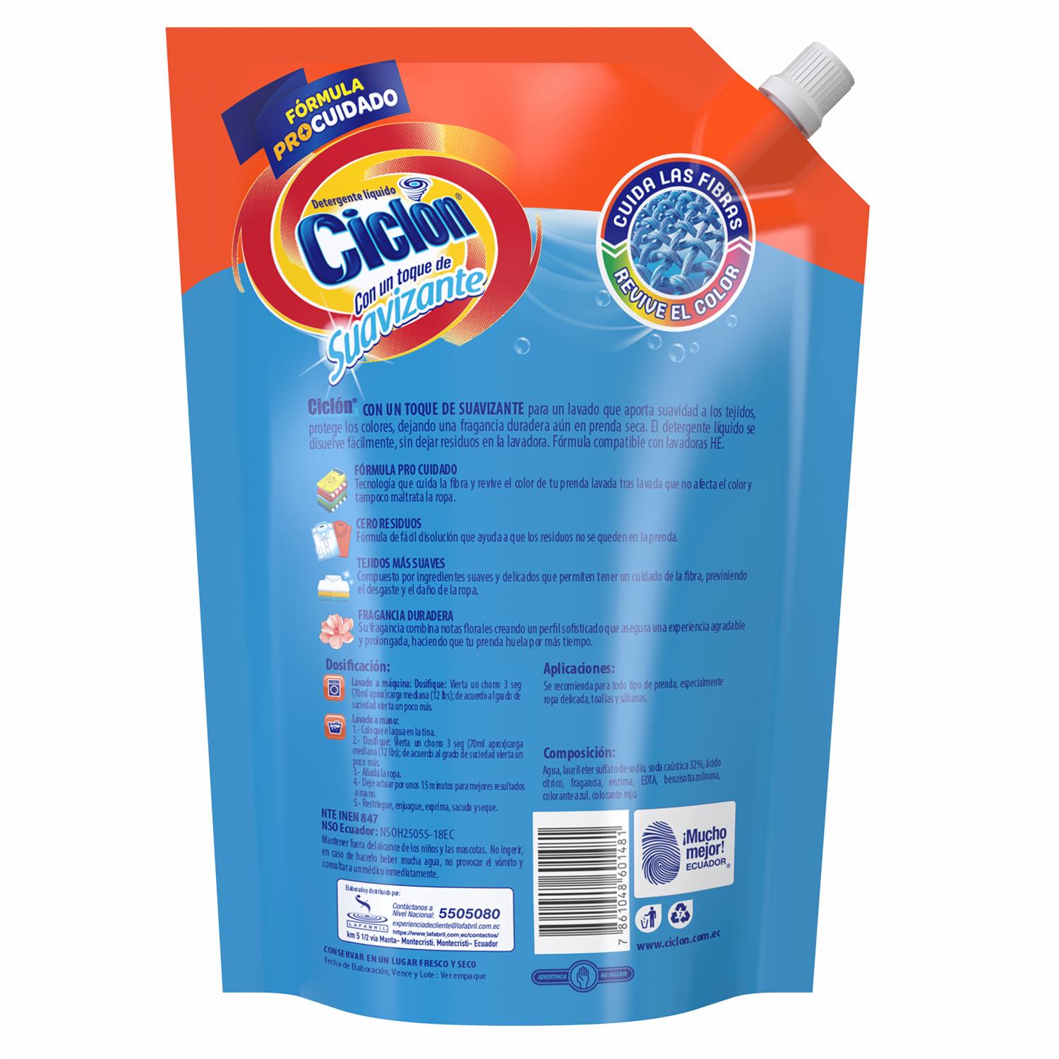 Detergente Liquido Ciclón Con Un Toque De Suavizante Revive Los Colores, Aporta Suavidad Y Fragancia Duradera A Tus Prendas