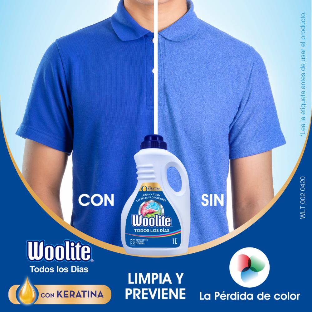 Woolite Todos Los Días Ahora Con Keratina Es El Detergente Líquido Para Toda Tu Ropa Ya Que Te Ayuda A Limpiar Y Prevenir La Pérdida De Color, El Estiramiento Y El Encogimiento De Tus Prendas Favoritas. Lea Atentamente El Rótulo / Etiqueta De Las Prendas Y El Producto Antes De Su Uso