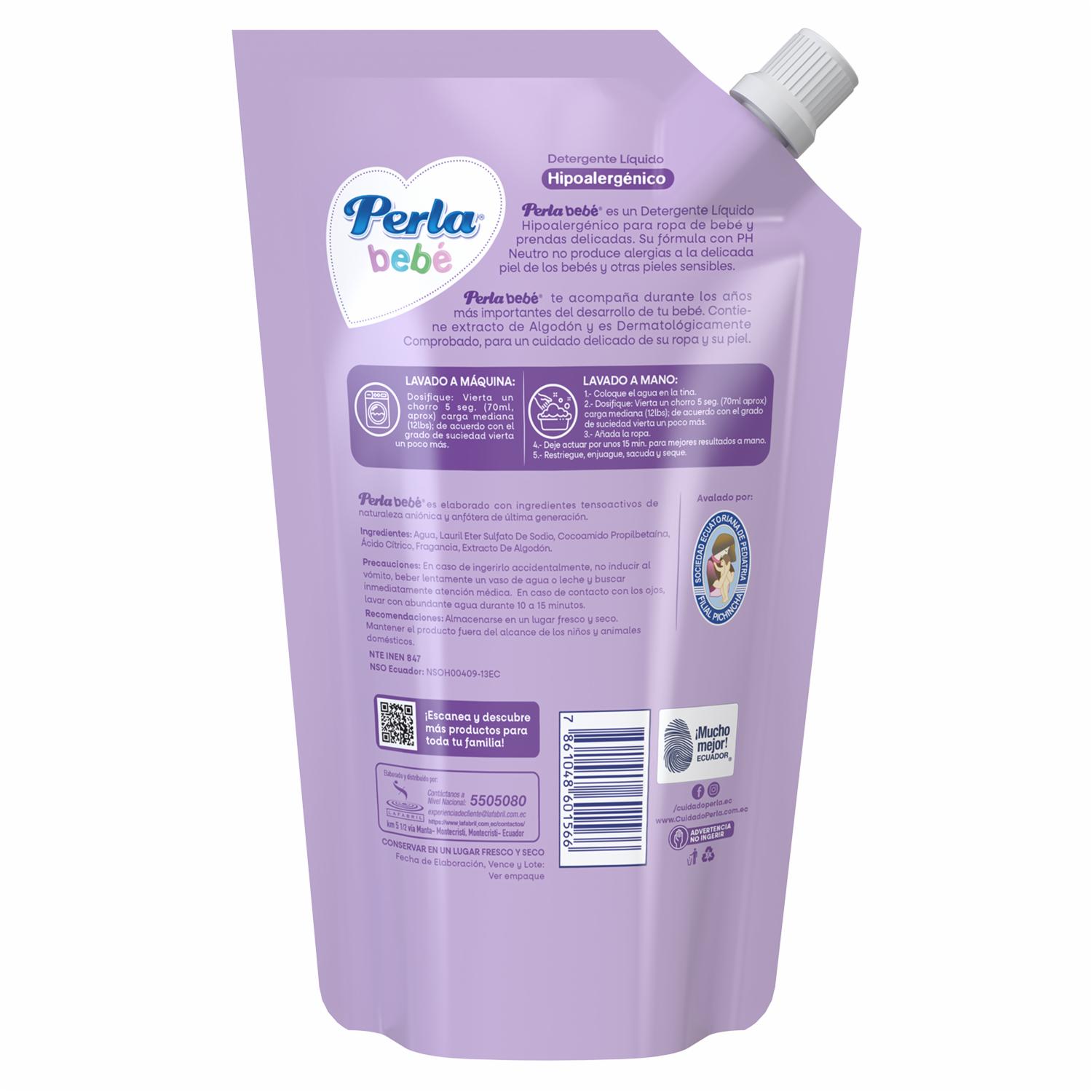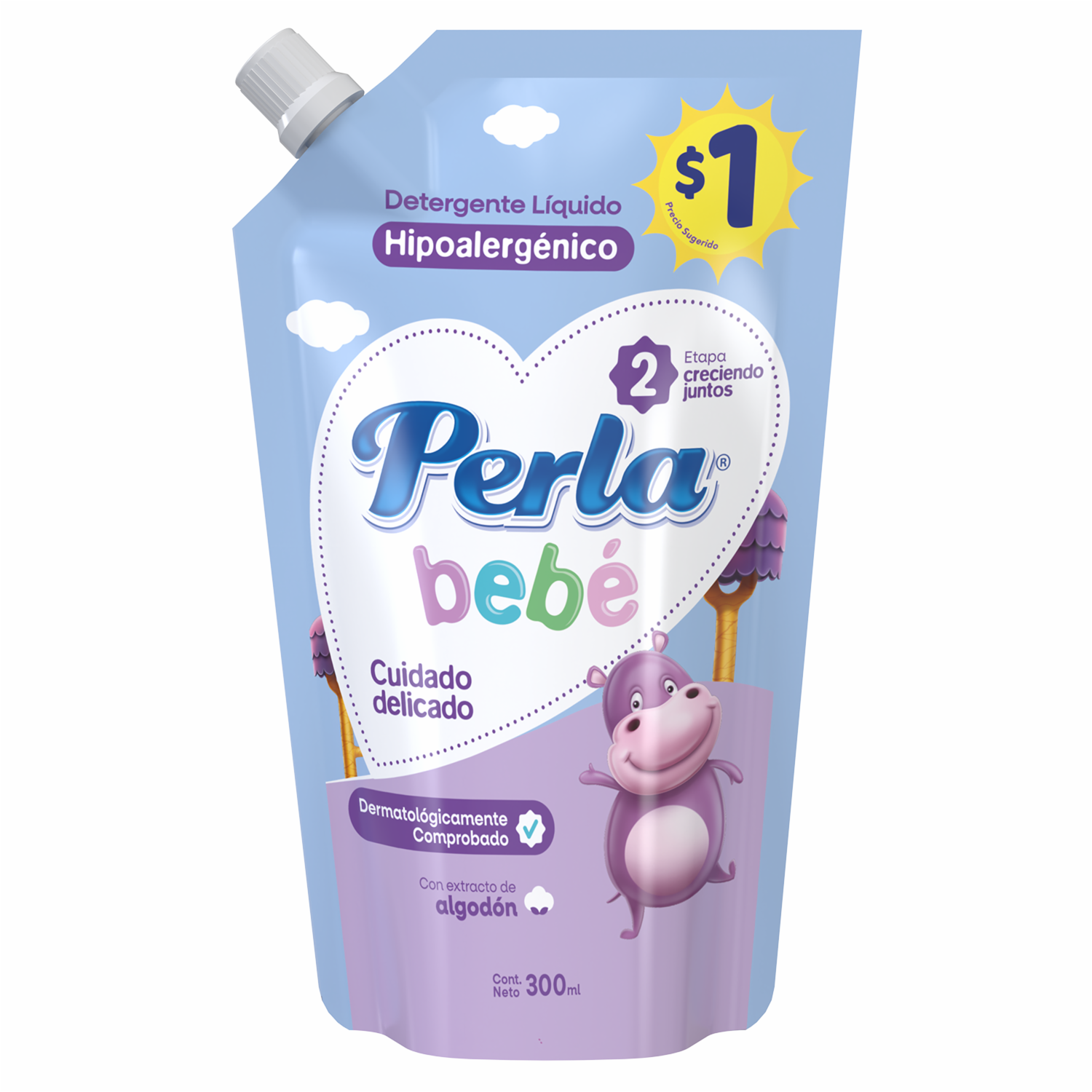 - El Detergente Liquido Perla Bebe Algodón Doy Pack 300 Mililitros Es El Detergente Liquido Hipoalergénico Para Pieles Sensibles Con Agradable Fragancia Natural A Algodón