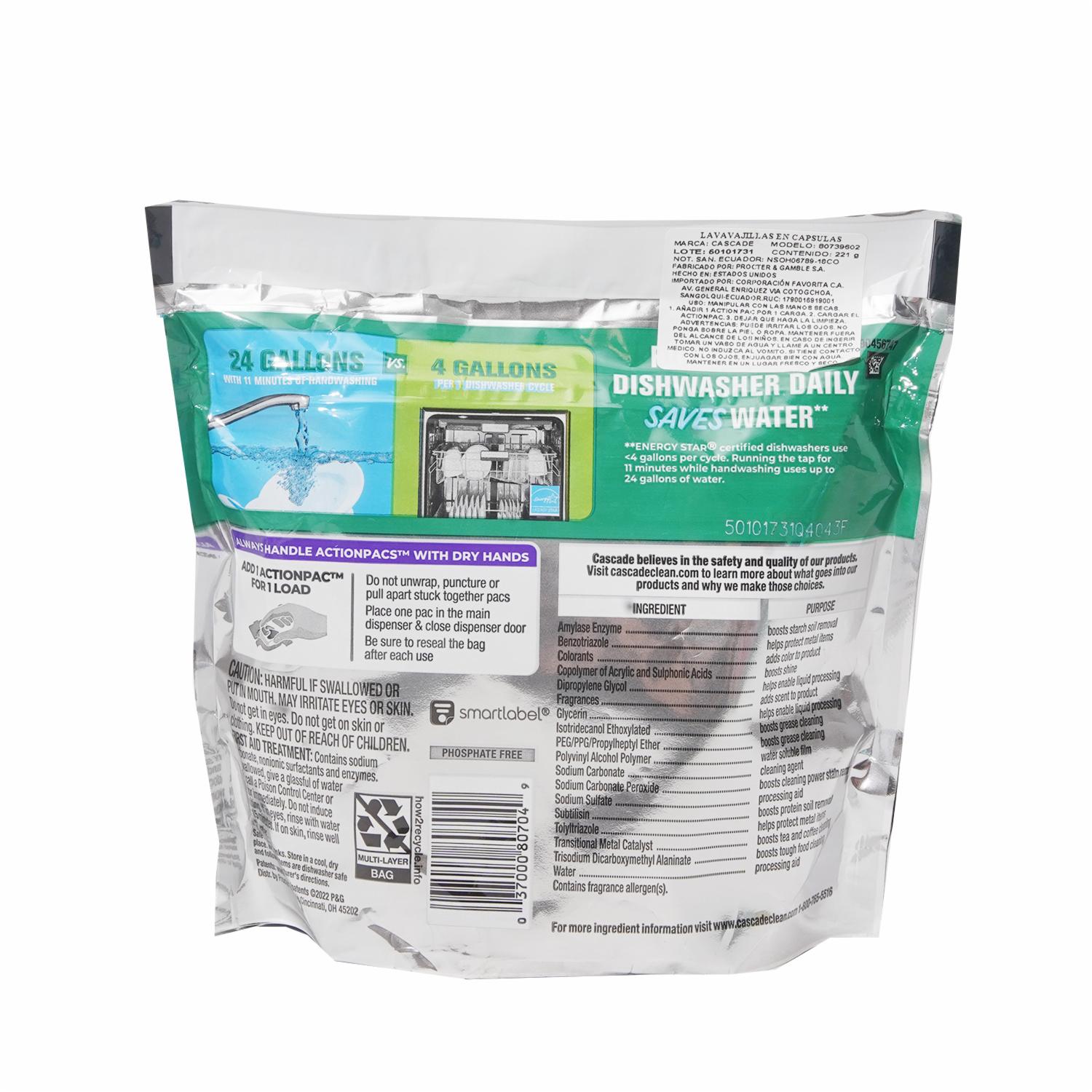 Detergente Platinum Para Lavavajillas Fresh En Cápsulas CASCADE 221 G