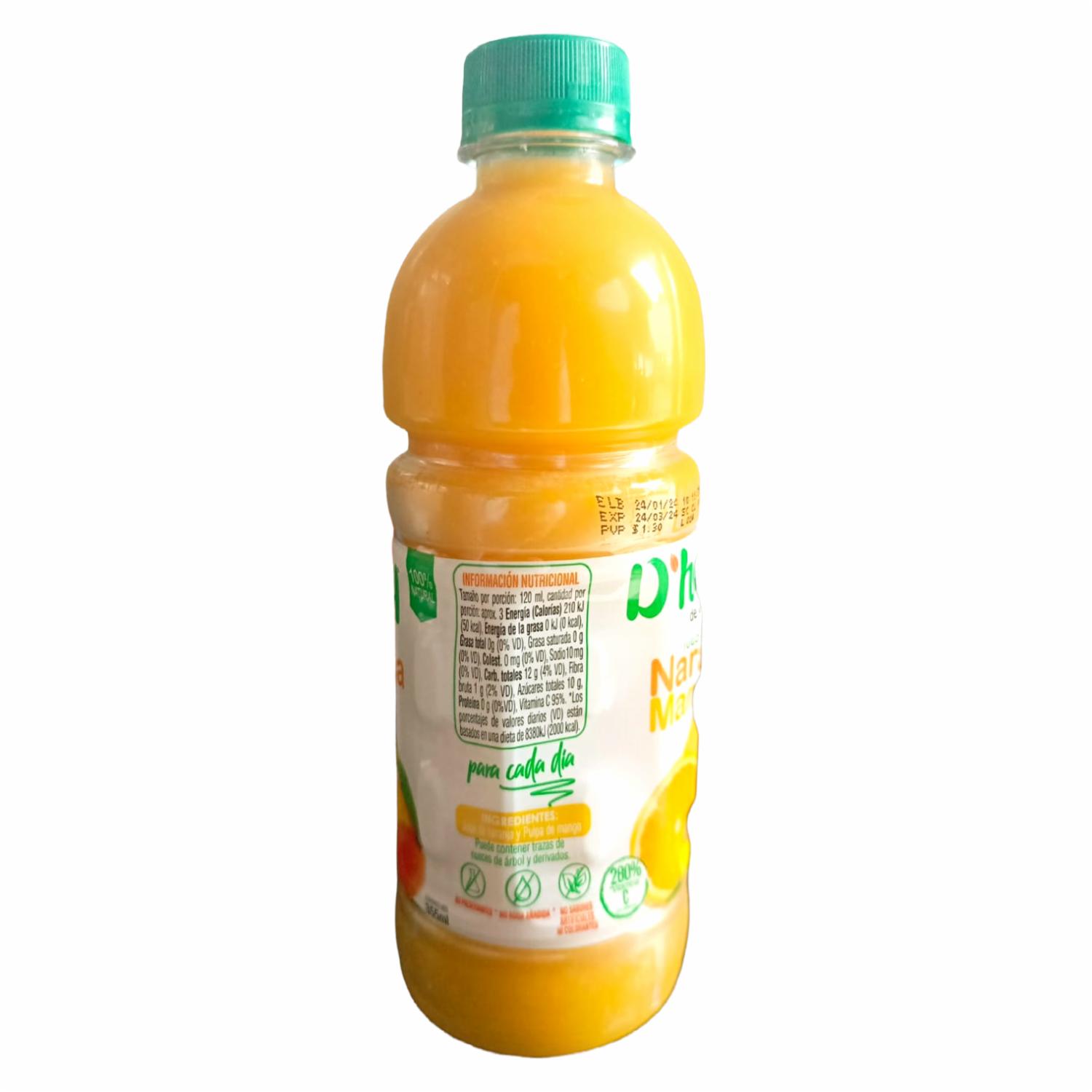 - Refresca tu día con el Jugo de Naranja y Mango 100% natural de D'HOY. Esta deliciosa mezcla combina la jugosidad y dulzura del mango con la frescura cítrica de la naranja, creando una experiencia de sabor única y refrescante