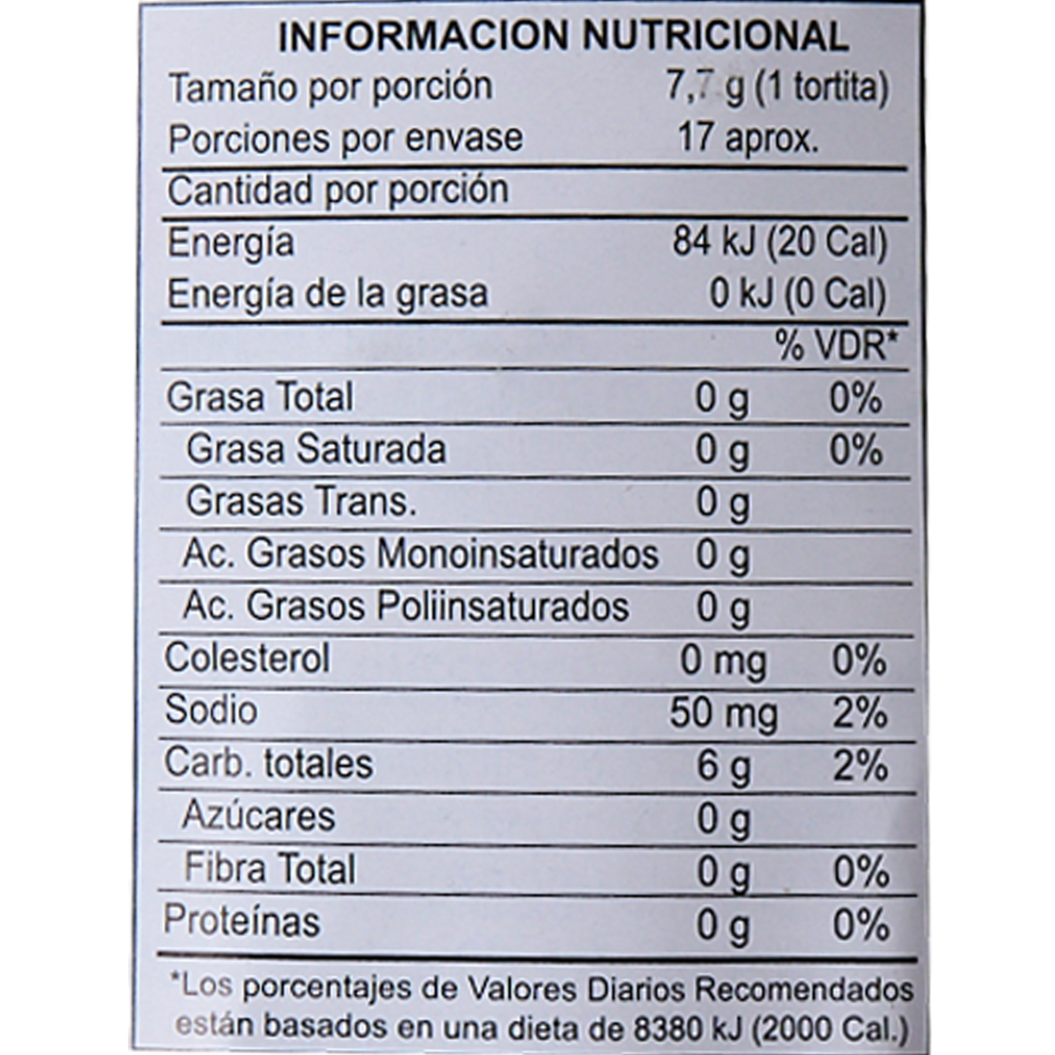 La tortilla está elaborada principalmente con arroz integral, que es una fuente de carbohidratos complejos, fibra dietética y algunos nutrientes, como vitaminas del complejo B y minerales