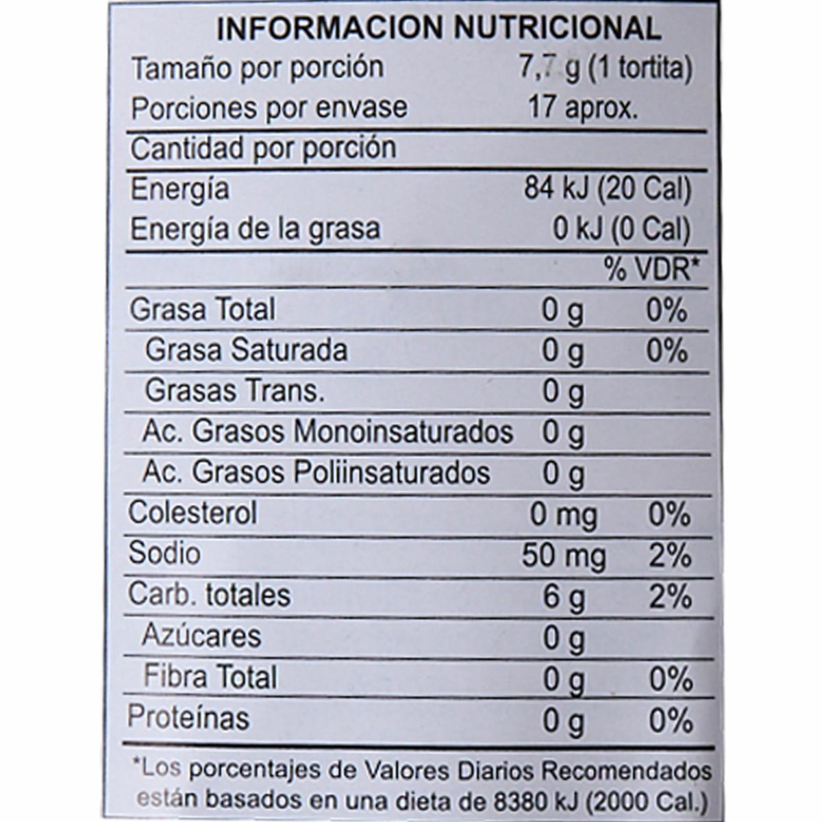 - La tortilla está elaborada principalmente con arroz integral, que es una fuente de carbohidratos complejos, fibra dietética y algunos nutrientes, como vitaminas del complejo B y minerales