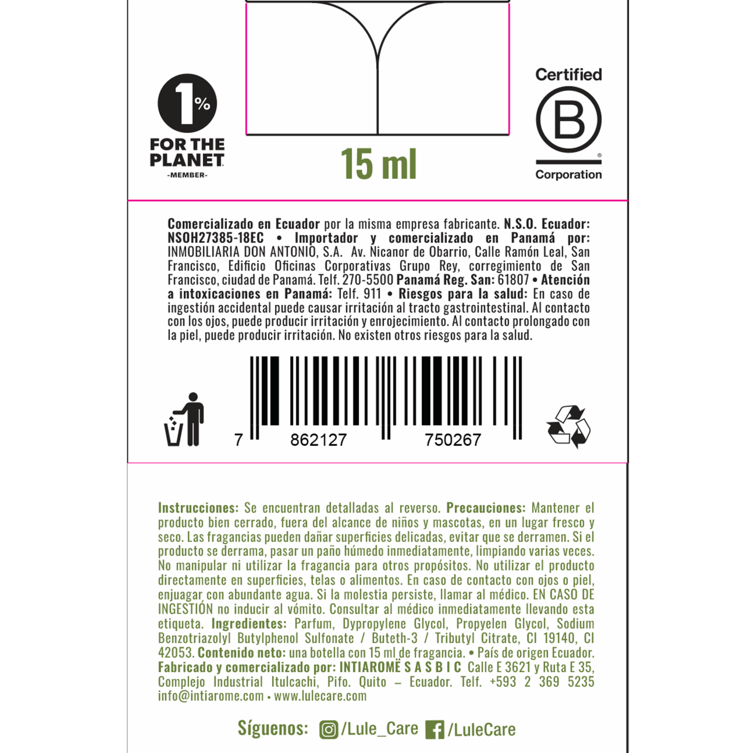 • Recarga x 3 para el Exclusivo Difusor para Auto Lulë, con fragancia exclusiva que transporta emociones. Frasco de vidrio reciclable de 15 ml con gotero para recargar la esfera 3 veces por el mismo costo