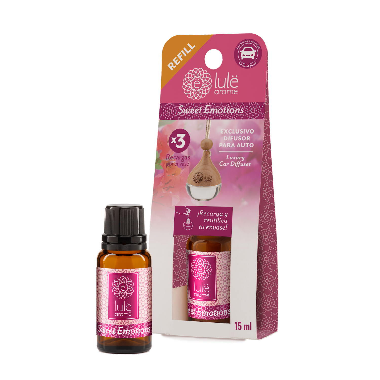 Difusor Ambiental Para Auto Recarga Fragancia Sweet Emotions LULË AROMË 15 Ml