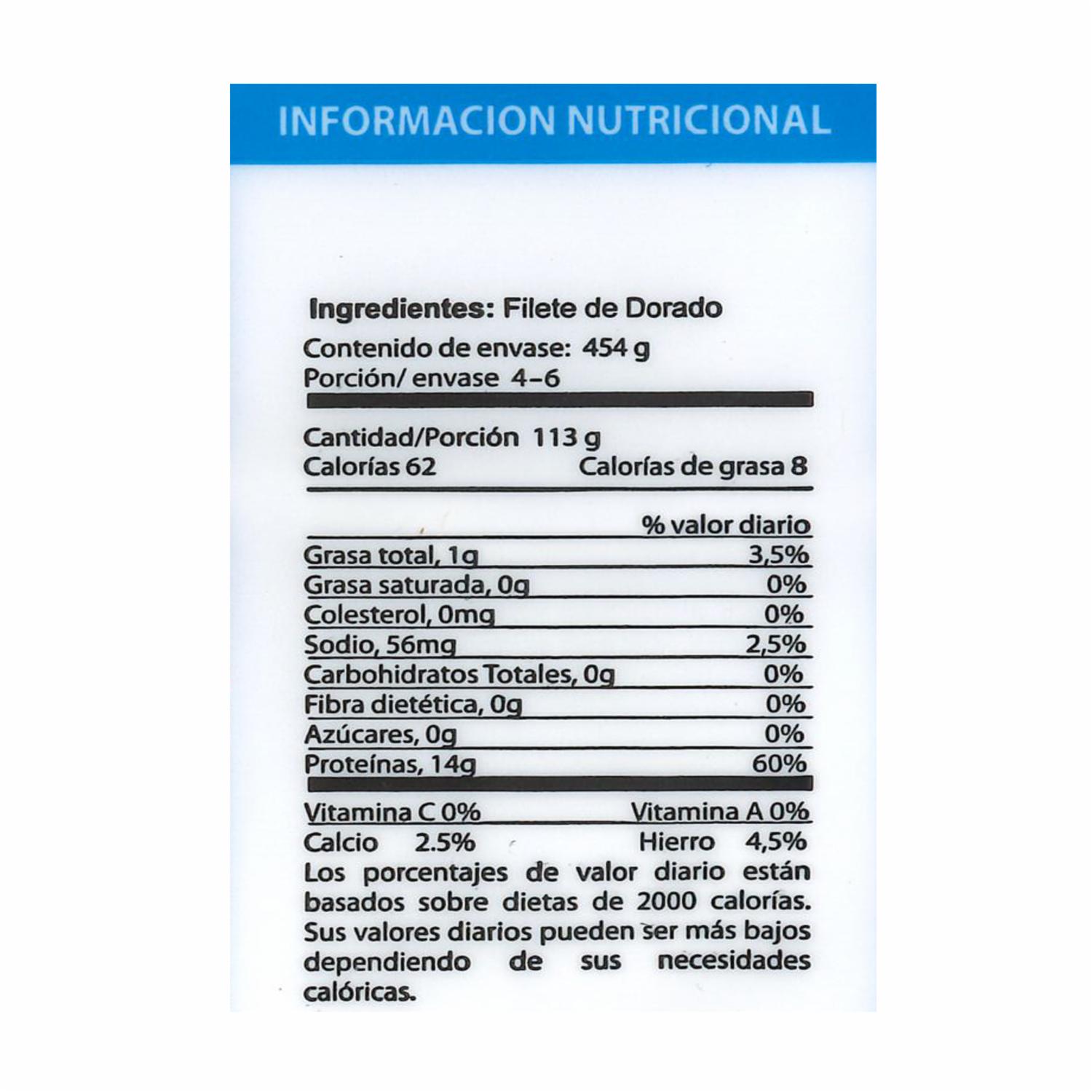 Dorado Filete ALEMAN FISH 454 G – ALEMAN FISH. Disponible en nuestros locales. Precio y stock pueden variar según la tienda.