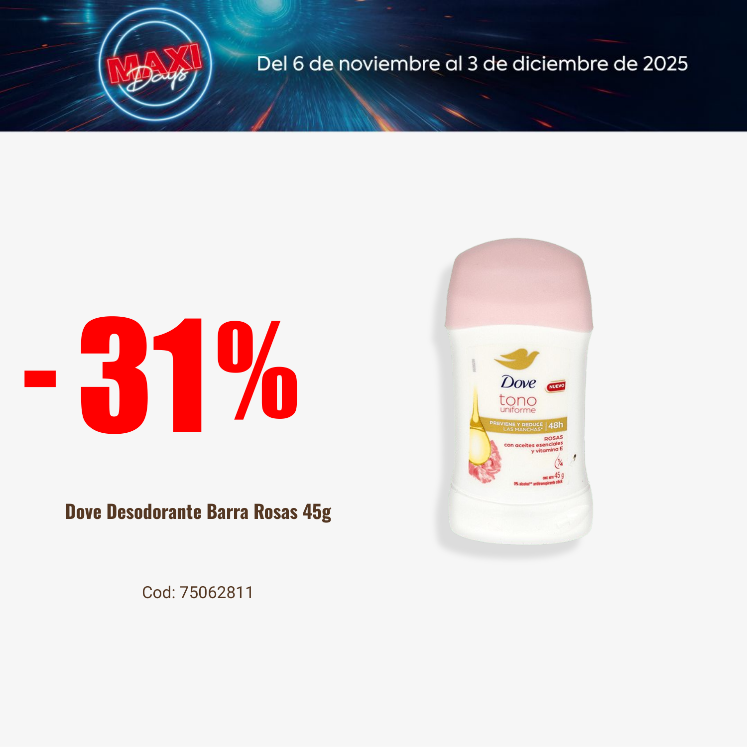 Dove Desodorante Barra Rosas 45g