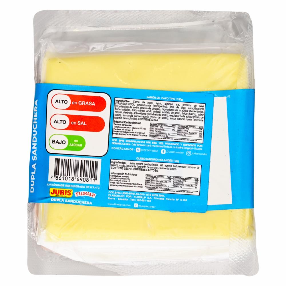 Dupla Sanduchera Jamón De Pavo Y Queso Holandés JURIS 250 G