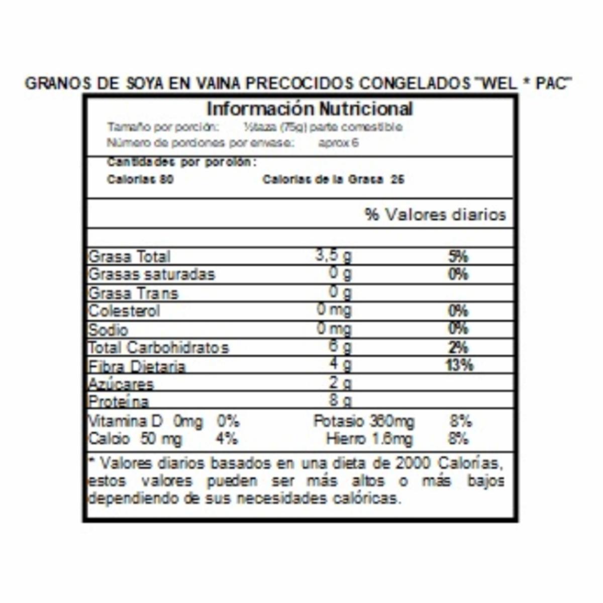Edamame Granos De Soya WEL-PAC 454 G – WEL PAC. Disponible en nuestros locales. Precio y stock pueden variar según la tienda.