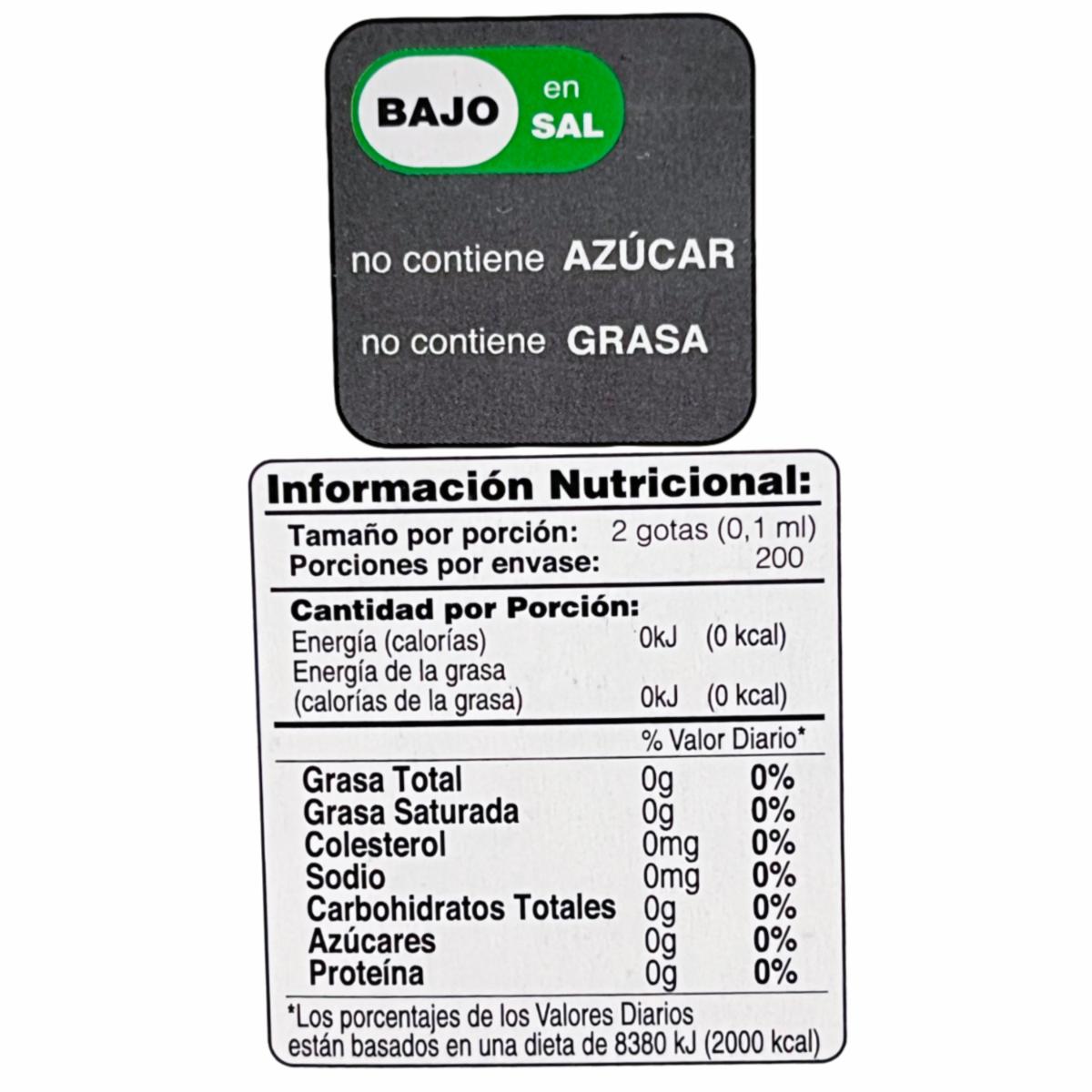 - Ingredientes: agua desmineralizada, sucralosa, ácido cítrico, benzoato de sodio