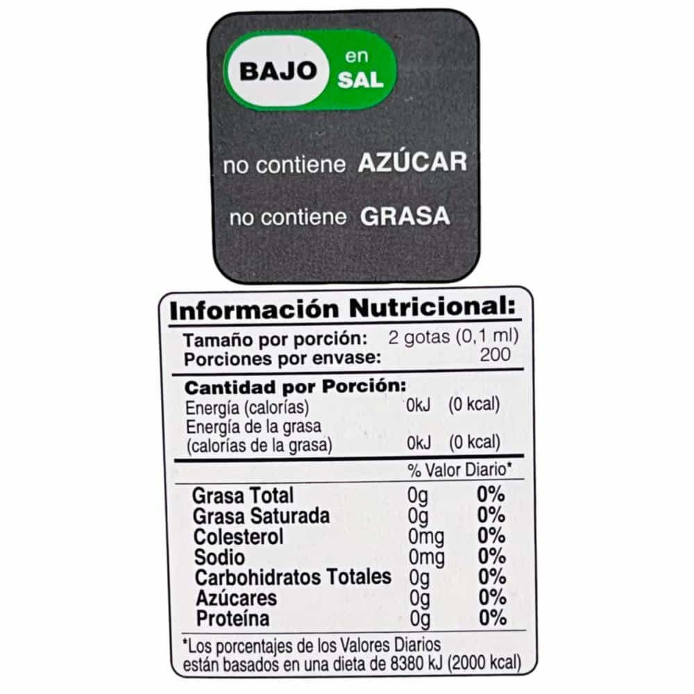 • Ingredientes: agua desmineralizada, sucralosa, ácido cítrico, benzoato de sodio