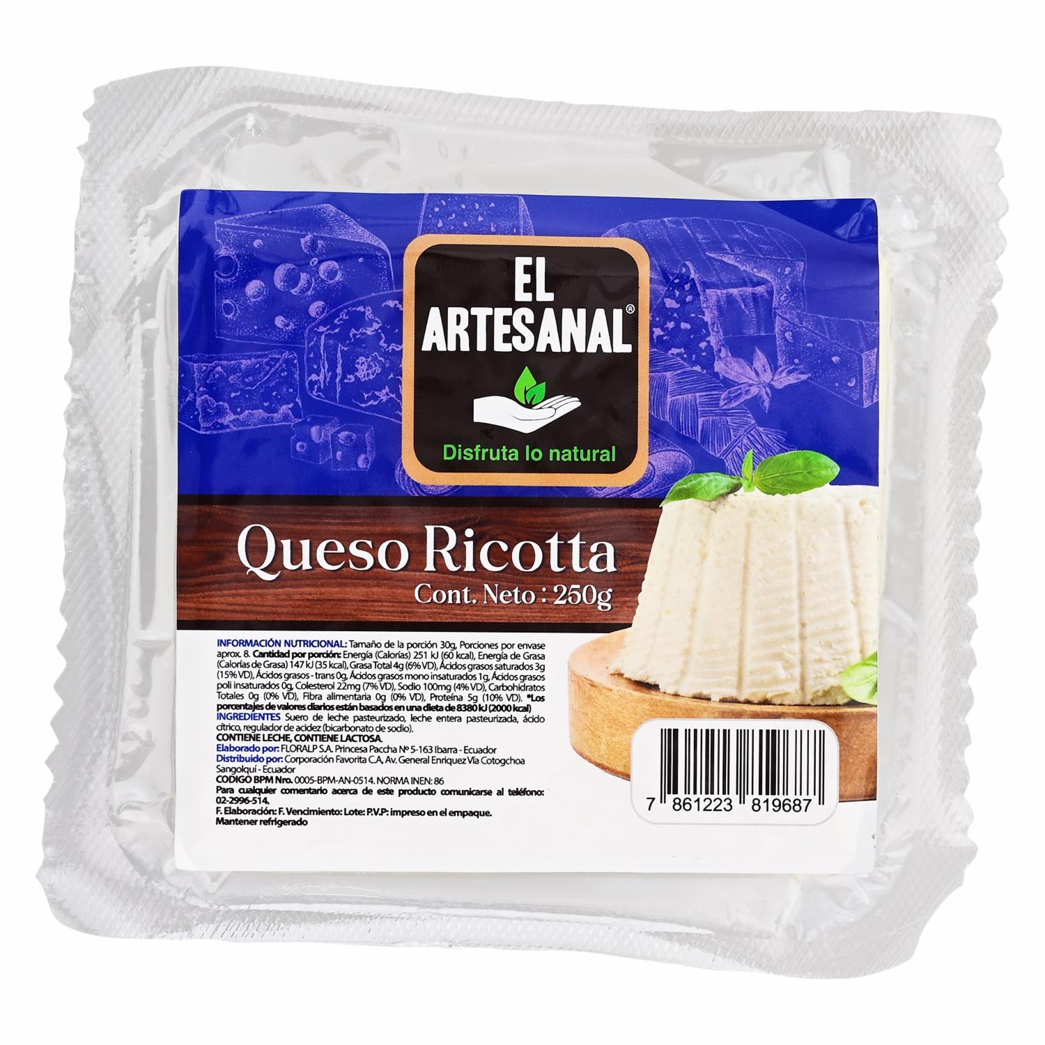 consultando preciosQueso Ricotta Clásico EL ARTESANAL 250 G – EL ARTESANAL. Disponible en nuestros locales. Precio y stock pueden variar según la tienda.