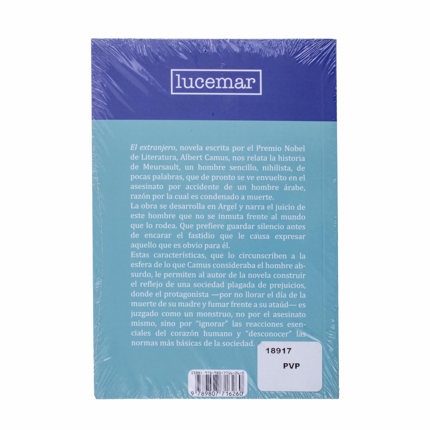 - La novela -lúcida descripción de la carencia de valores del mundo contemporáneo- tiene como referencia omnipresente a Meursault, su protagonista, a quien una serie de circunstancias conduce a cometer un crimen aparentemente inmotivado;,su muerte en el patíbulo no tendrá más sentido que su vida, corroída por la cotidianidad y gobernada por fuerzas anónimas que, al despojar a los hombres de la condición de sujetos autónomos, les eximen también de responsabilidad y de culpa