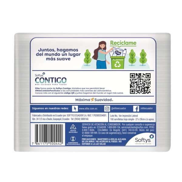 Servilletas De Mesa Ultra Suaves 27 X 28 Cm ELITE X 100 Uds