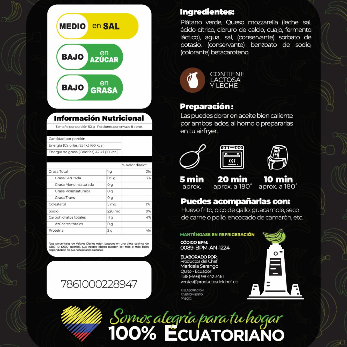 Empanadas de maduro rellenas de queso mozzarella las puedes preparar a fritura media a temperatura media buscando dorar lado y lado de las empanadas, o en un microondas, o en air fryer, son productos libres de gluten colorantes y saborizantes artificiales, elaborados bajo certificación BPM