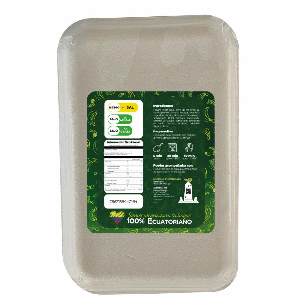 Nuestras empanadas de plátano verde están elaboradas con masa 100% plátano verde, rellenas con carne seleccionada de primera calidad, arroz y albahaca fresca. Su refrito casero mantiene los sabores tradicionales, evocando la cocina de hogar. Son prácticas y versátiles, ideales para compartir en familia o con amigos. Se recomienda calentarlas al horno o freírlas hasta dorar para disfrutar de su sabor auténtico