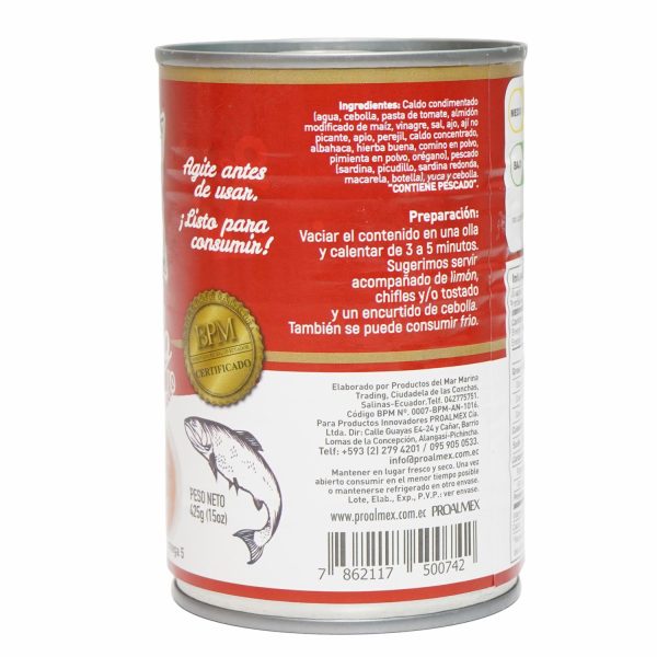 • Encebollado de pescado (preparado de pescado con aderezo de cebolla y otros ingredientes). Aporta 310kcal; 7,0g de grasas totales; 27,0 g de carbohidratos y 35,0 g de proteínas