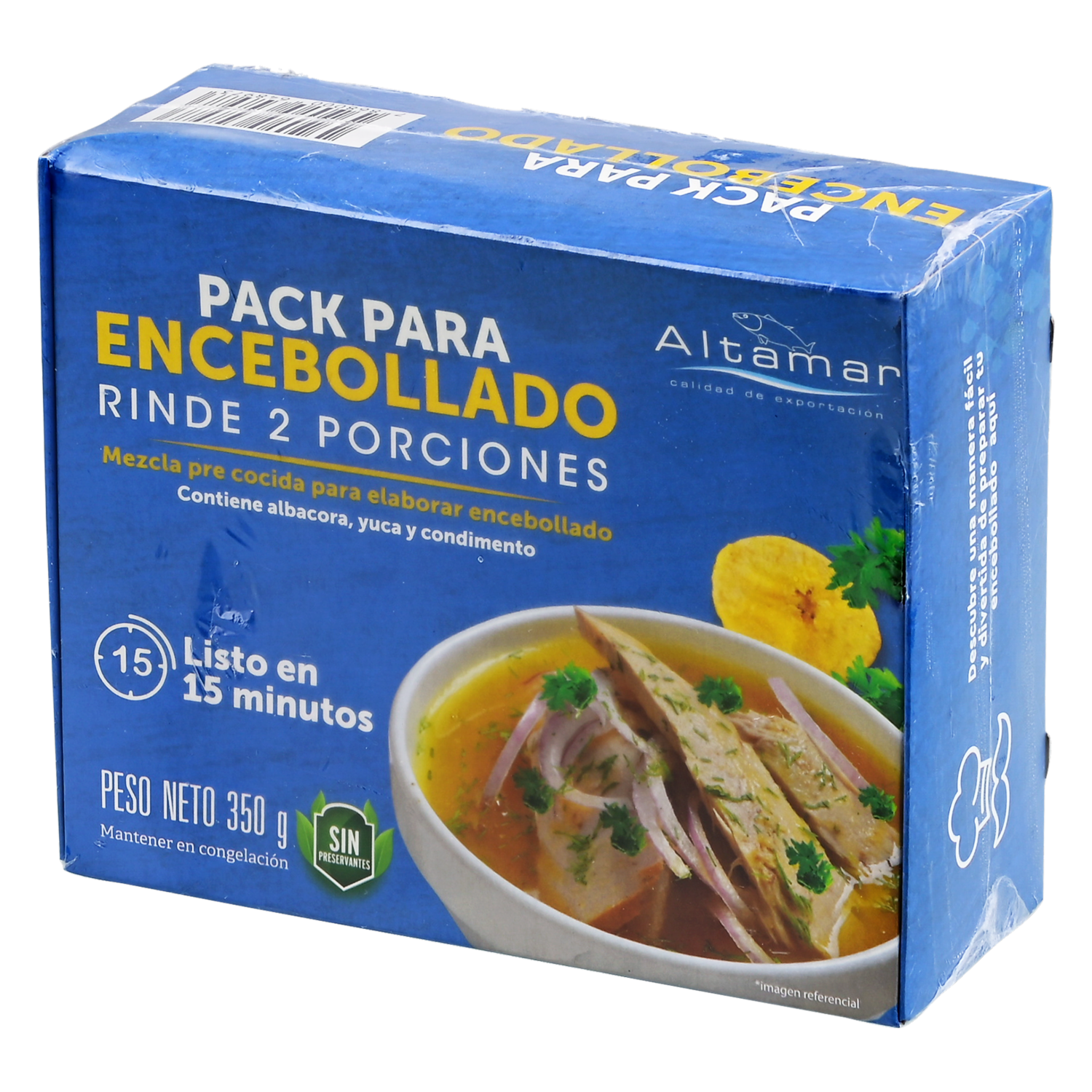 - Pack para encebollado, rinde 2 porciones. Esta mezcla precocida incluye albacora, yuca y condimentos especiales, lo que facilita la preparación de un delicioso encebollado en minutos. Perfecto para quienes desean disfrutar de un plato tradicional sin complicaciones, con todo el sabor y la frescura de los ingredientes de calidad