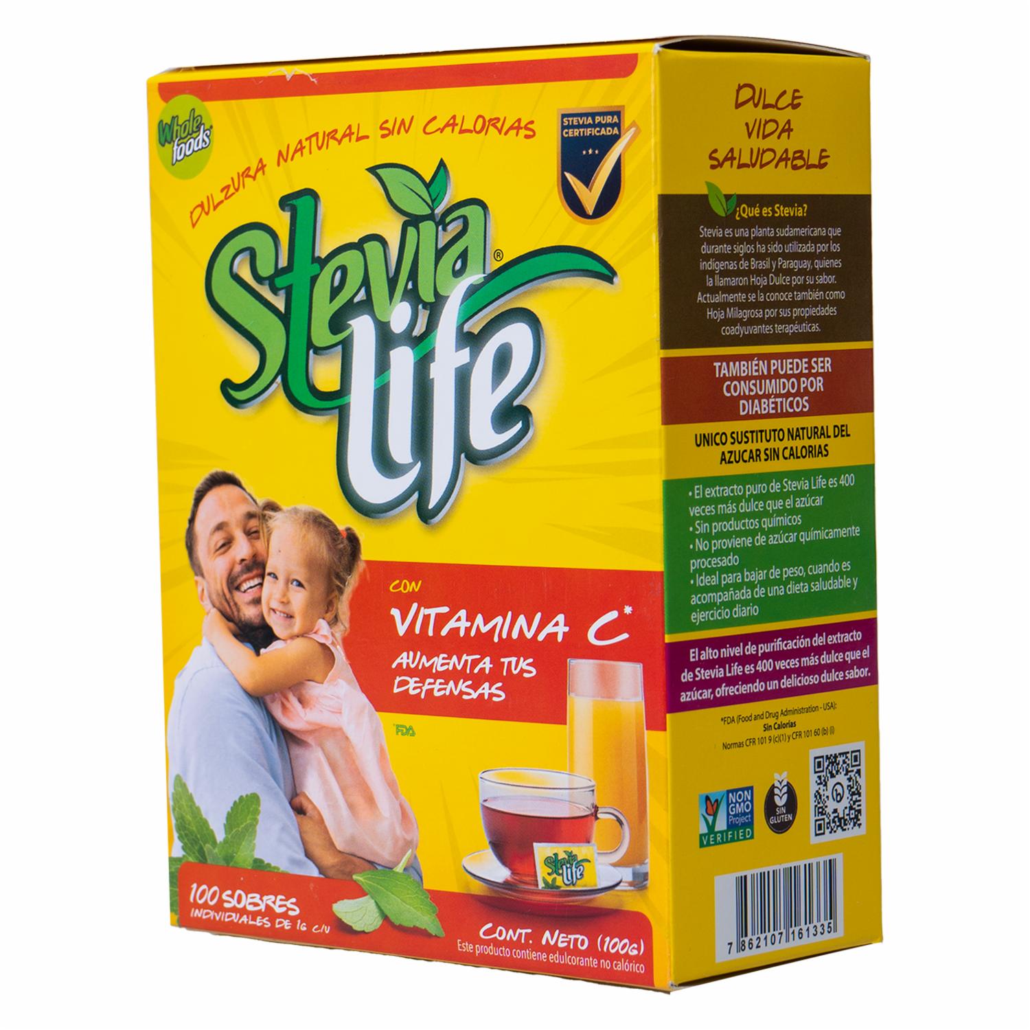 - Te presentamos lo nuevo de Stevia Life con Vitamina C , el endulzante perfecto para fortalecer tu sistema inmunológico.Endulzante 100% natural con extracto de vainilla, además de endulzar tus bebidas tienes un toque de sabor que complementa tu bebida favorita