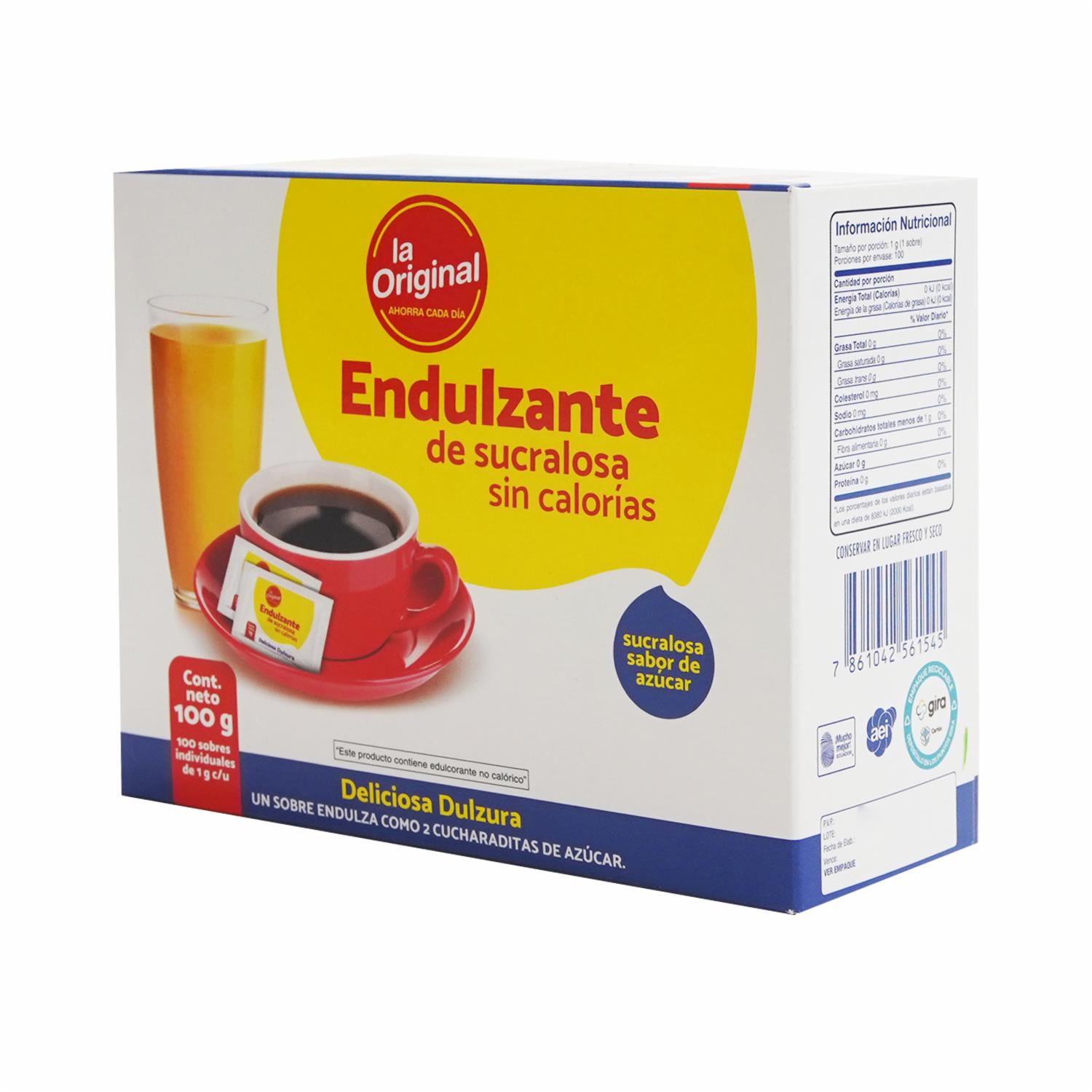 Endulzante De Sucralosa LA ORIGINAL Caja – LA ORIGINAL. Disponible en nuestros locales. Precio y stock pueden variar según la tienda.