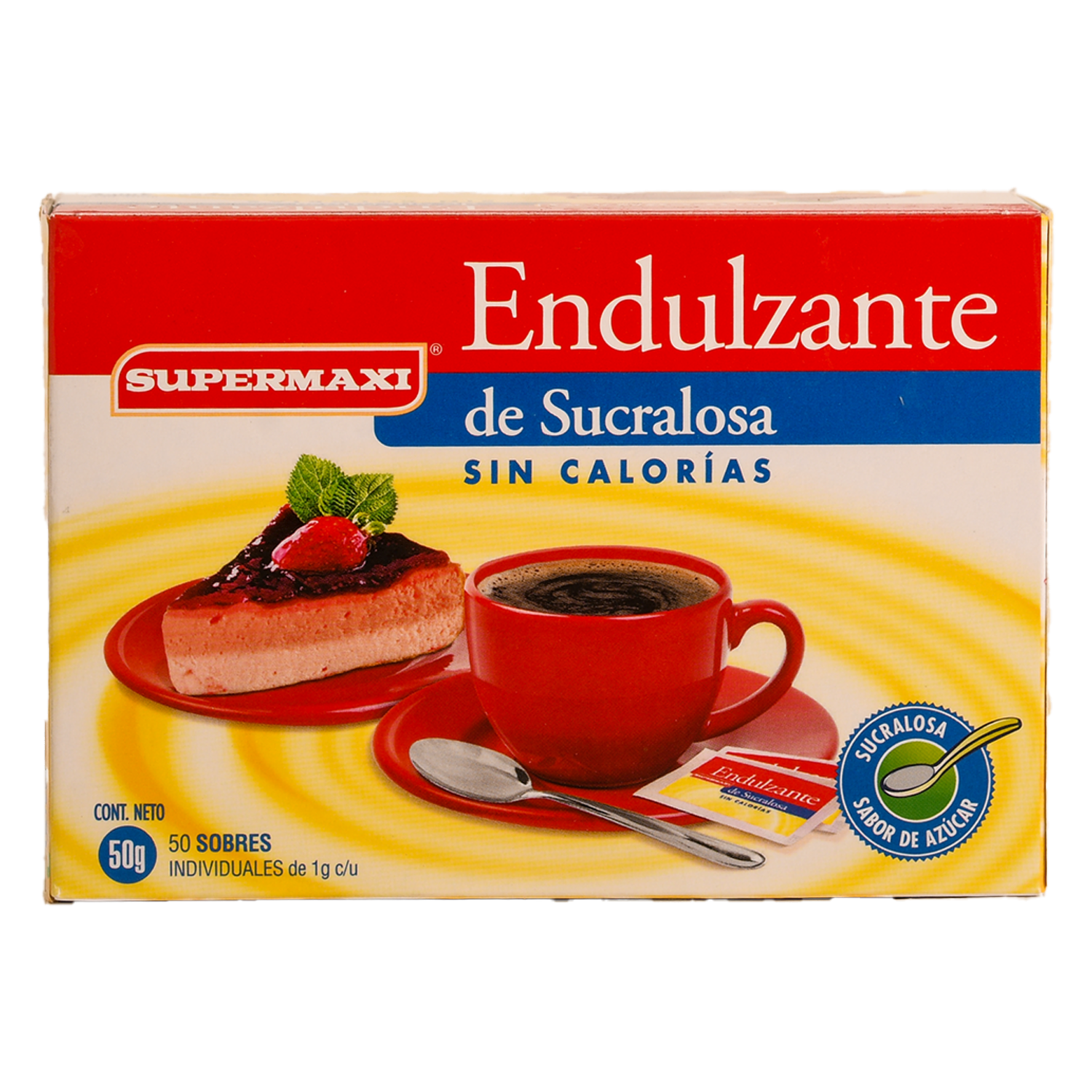 Endulzante De Sucralosa Sin Gluten SUPERMAXI 50G – SUPERMAXI. Disponible en nuestros locales. Precio y stock pueden variar según la tienda.