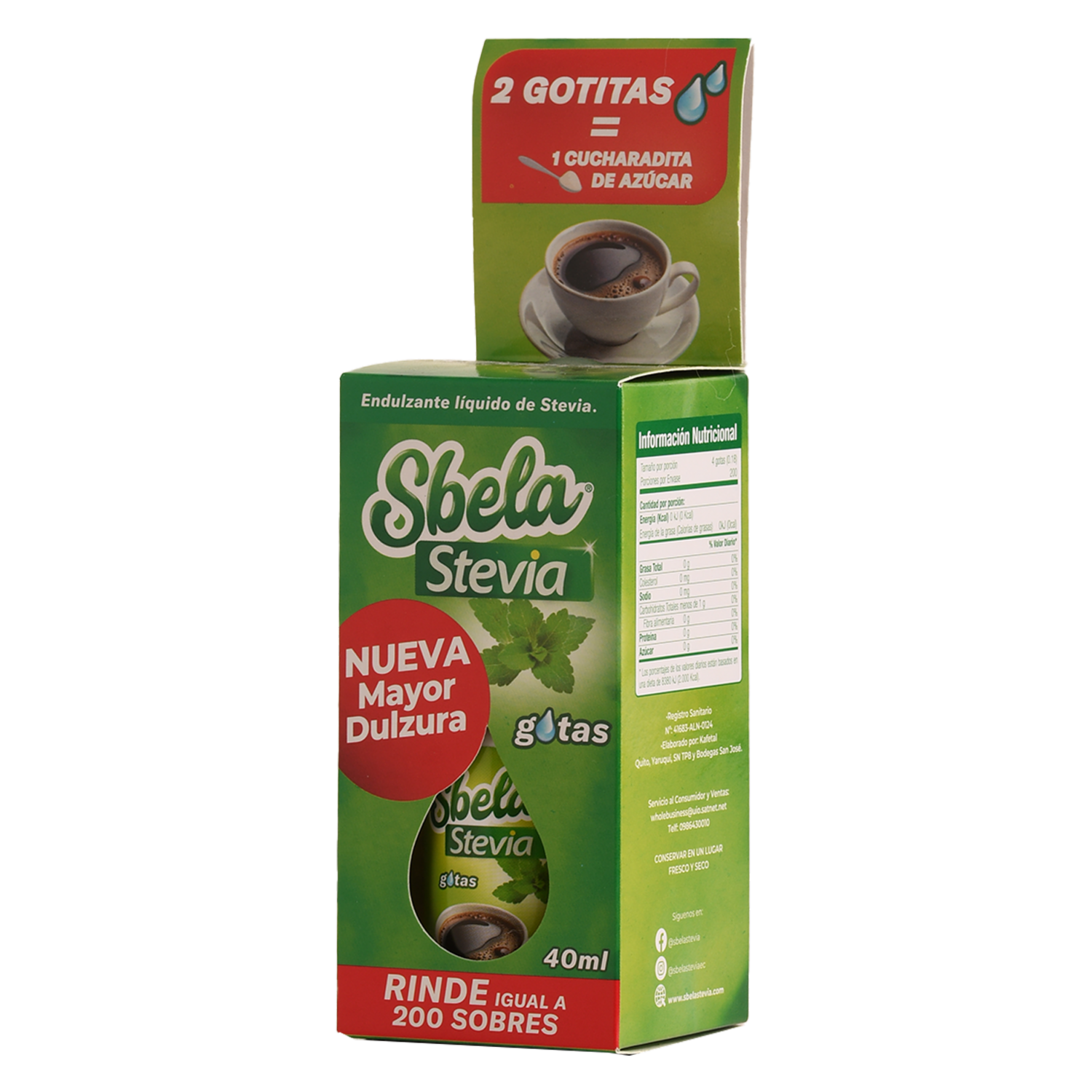 Endulzante Líquido De Stevia En Gotas S’BELA 40 Ml