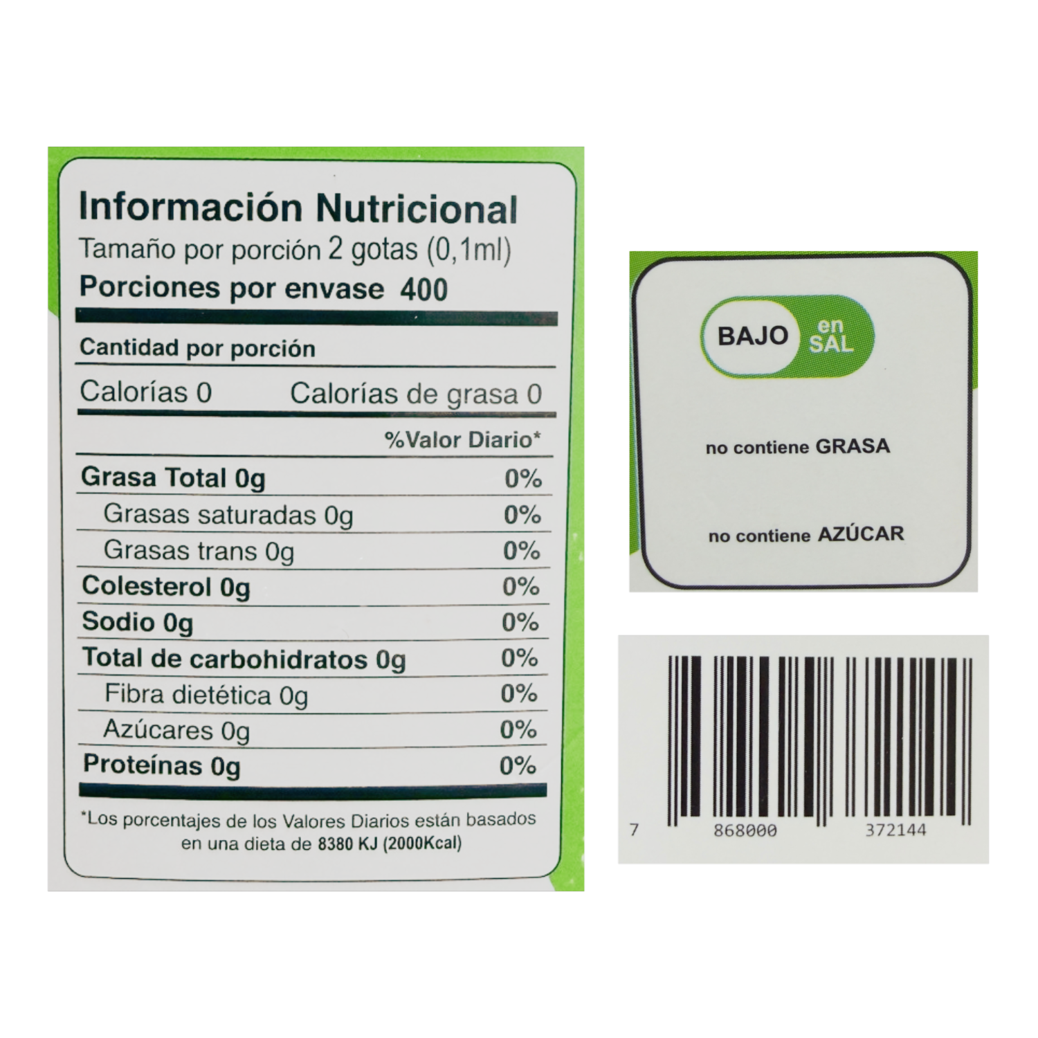 Sin azúcar, sin gluten y libre de aspartame.